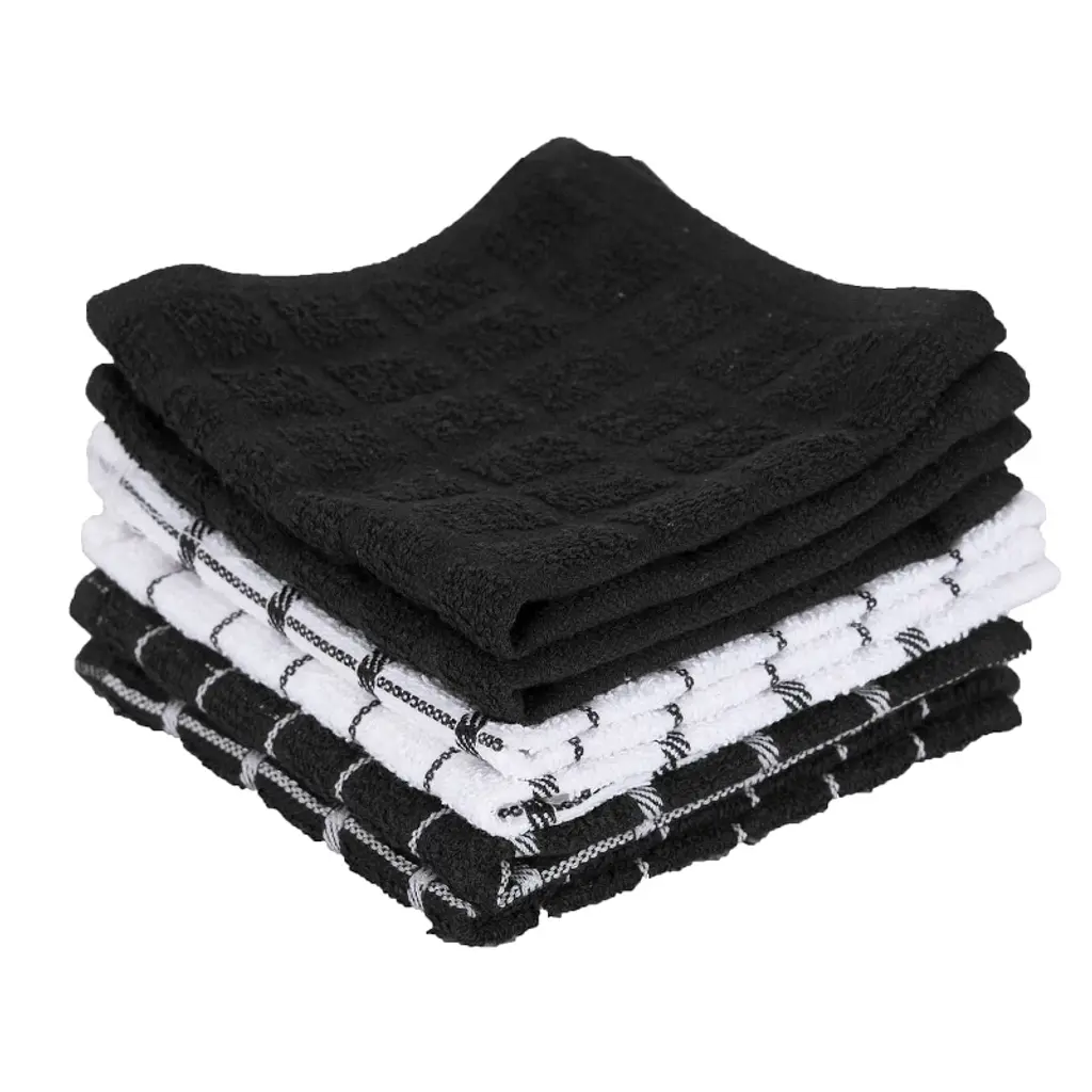 Sturdy as they are soft this set of 6 RITZ Terry Check Dish Cloths offers durable effectiveness throughout the home no matter how tall the task. Crafted with 100% cotton and featuring terry-loop construction these absorbent cloths are designed with a special woven technology that makes them perfect for drying dishes and wiping down surfaces. Convenient 12 in. by 12 in. (30 cm by 30 cm) sizing ensures these versatile cloths tackle tasks with ease and a variety of charming colors ensures they look good doing it. Machine washable for hassle-free cleaning. Set includes 6 cloths. Includes: 2 solid-colored cloths 2 dark check cloths and 2 light check cloths. Designed with a "wave" terry-loop construction featuring special woven technology. 12 in. by 12 in. (30 cm by 30 cm). Machine washable.