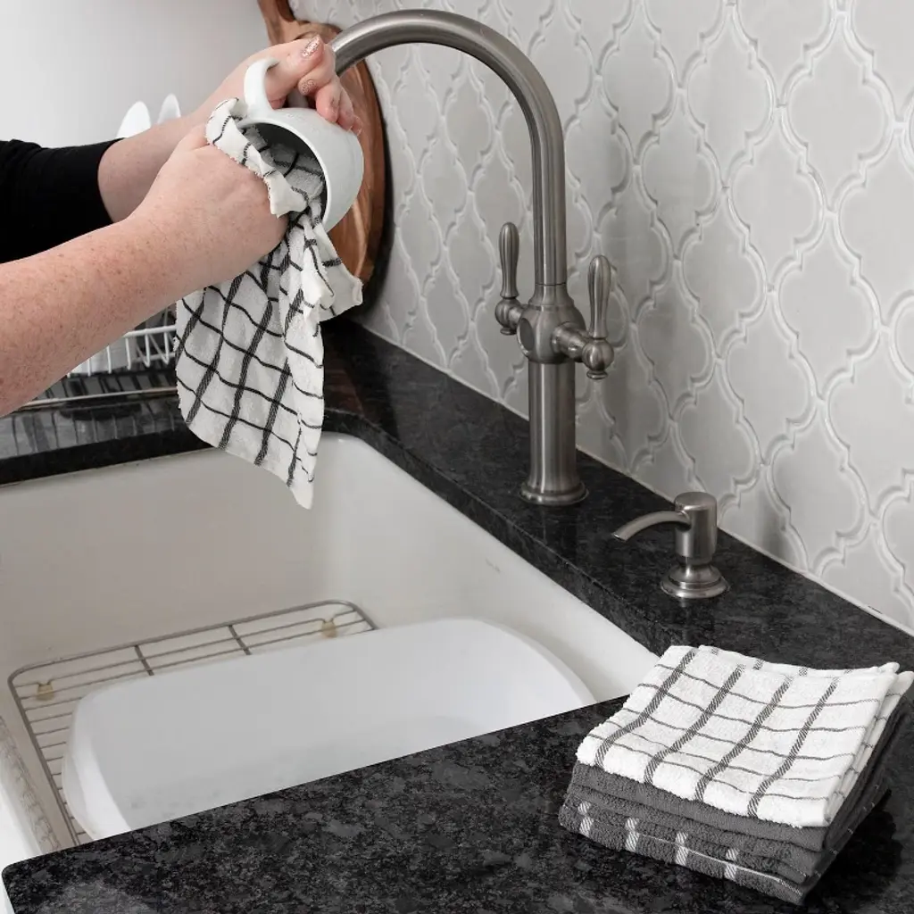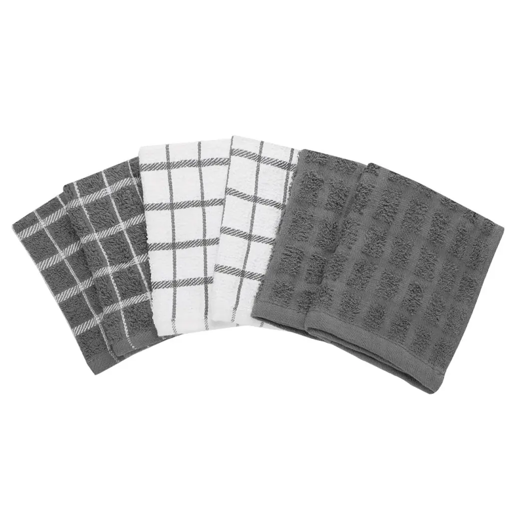 John Ritzenthaler Co. Terry Check Dish Cloth Set Of Six Grey