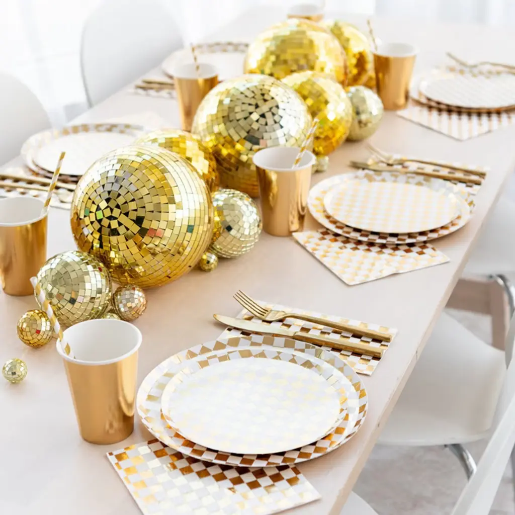 Jollity & Co. - Check It! Gold Clash Dessert Plates - Pack Of 8 Paper Plates