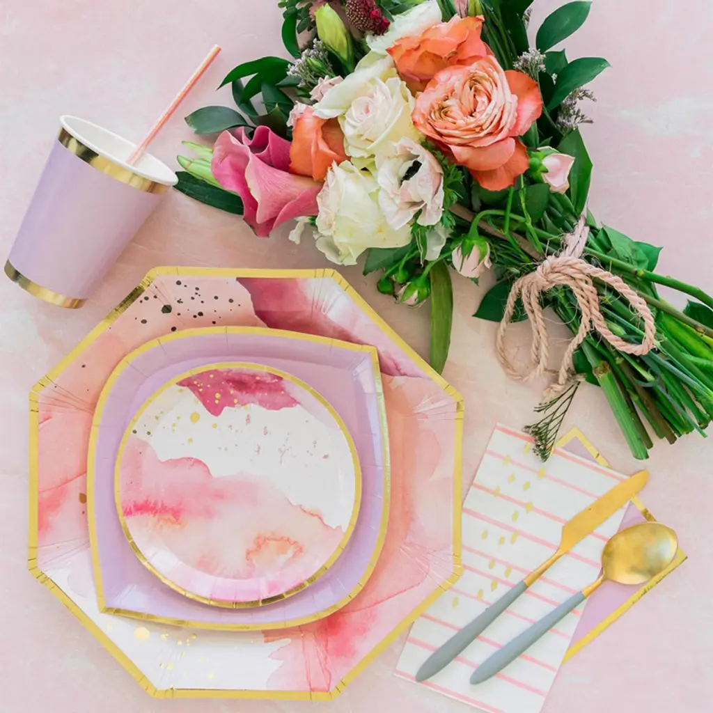 Blushing, playful and beautiful, the Jollity & Co Pretty in Pink Collection is perfect for the entertainer seeking a pink color palette that is subtle and charming, yet effortlessly stylish for birthdays, showers, brunches, and everything in between. Package contains 8 paper plates Each plate measures approximately 7 inches in diameter Not safe for microwave use