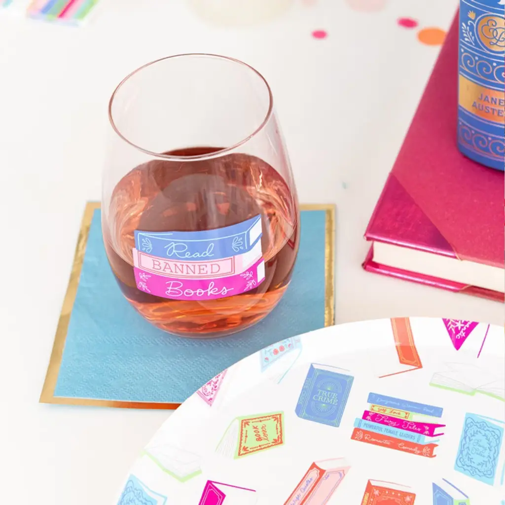 Hit the books with our “Book Club” collection, and read up on the latest bestseller while sipping from our “Read Banned Books” Wine Glass. This collection is not from your basic library, featuring vibrant shades of pink, and blue hues perfect for any book lover. With several phrases to select from these glasses make great gifts, especially when paired with a bottle of red or white and our book club cocktail napkins. So grab your glass, curl up with your favorite novel, and cheers to your reading addiction! Package contains 1 glass19 oz. capacityEach cup measures approximately 7.4 inches tall + 5.4 inches wideSuitable for cold beverages onlyNot safe for microwave use