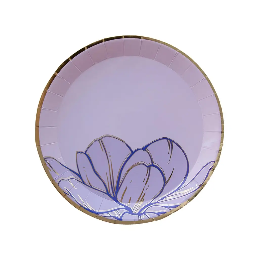 The Gatz Collection by Jollity & Co pays homage to the roaring '20s and all the glitz, glam, sparkle, and shine! This collection is comprised of three different colored dinner plates, a dessert plate, and a guest napkin. Perfect for large parties, “And I like large parties. They're so intimate. At small parties there isn't any privacy.” ― F. Scott Package contains 8 paper plates Each plate measures approximately 9 inches corner to corner Not safe for microwave use
