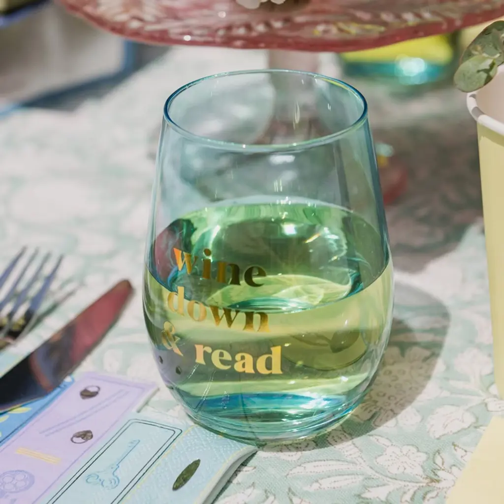 Jollity & Co. - "Wine Down & Read" Wine Glass - Pack Of 1 Wine Glass
