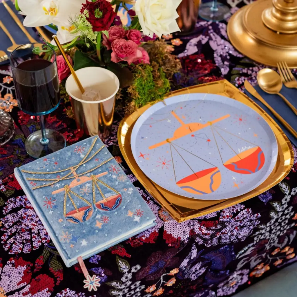 It’s giving cosmic energy! Each piece in this collection is designed to reflect each of the twelve astrological signs, bringing celestial charm to your celebrations. Bold Leo? Dreamy Pisces? The stars are aligning for this new collection! Balanced and gracious, the Libra Large Plate was made for our peaceful Libra friends Includes 8 Dinner PlatesMeasures 10" in DiameterNot safe for microwave use