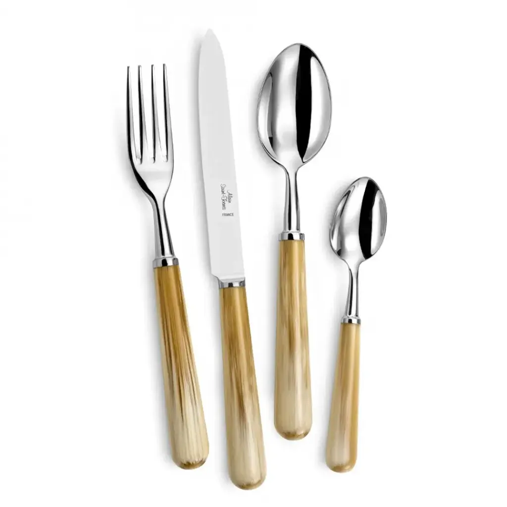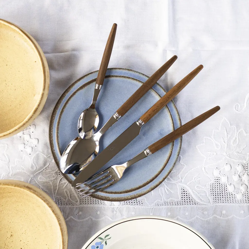A model of pure finesse and minimalist elegance, the Jonc 4-Piece Must-Have Serving Set from Sabre Paris is an essential and versatile collection for your home. Inspired by the long, slender handles of artists' brushes, each piece features a straight, thin wood handle for a contemporary and sophisticated feel. This beautiful set includes a serving fork, serving spoon, cheese knife, and pie server, providing everything you need for effortless entertaining. A fusion of simple form and quality materials, it’s a stunning and practical ensemble for any occasion. Highlights: