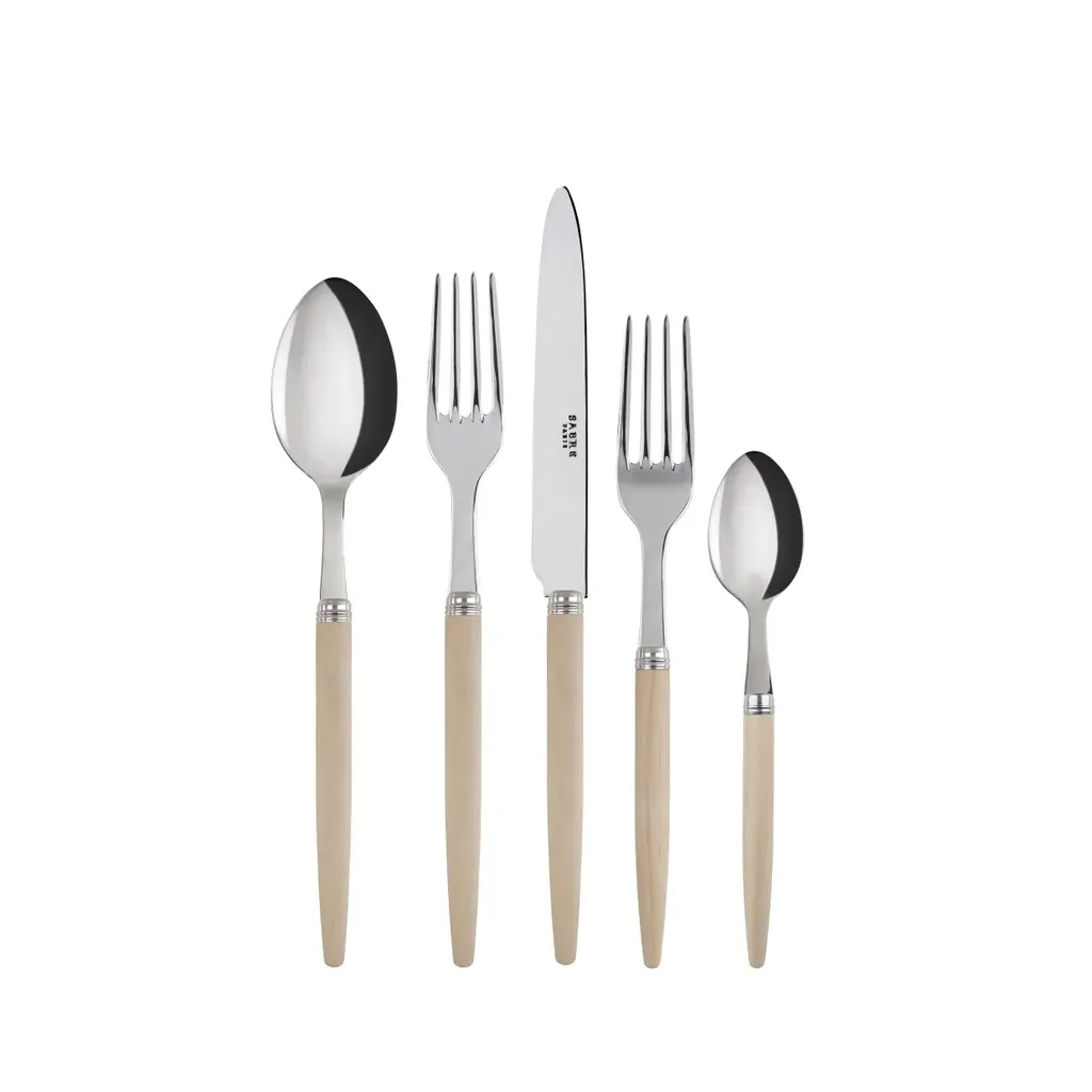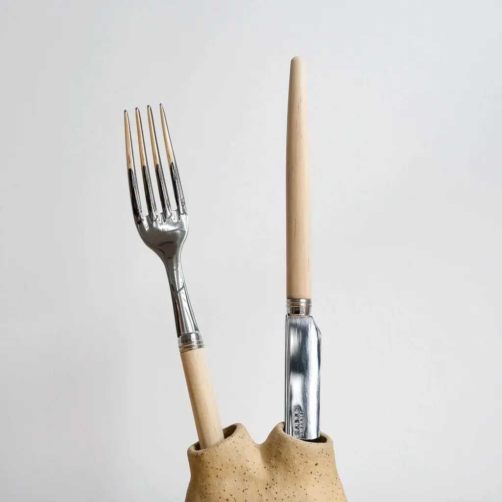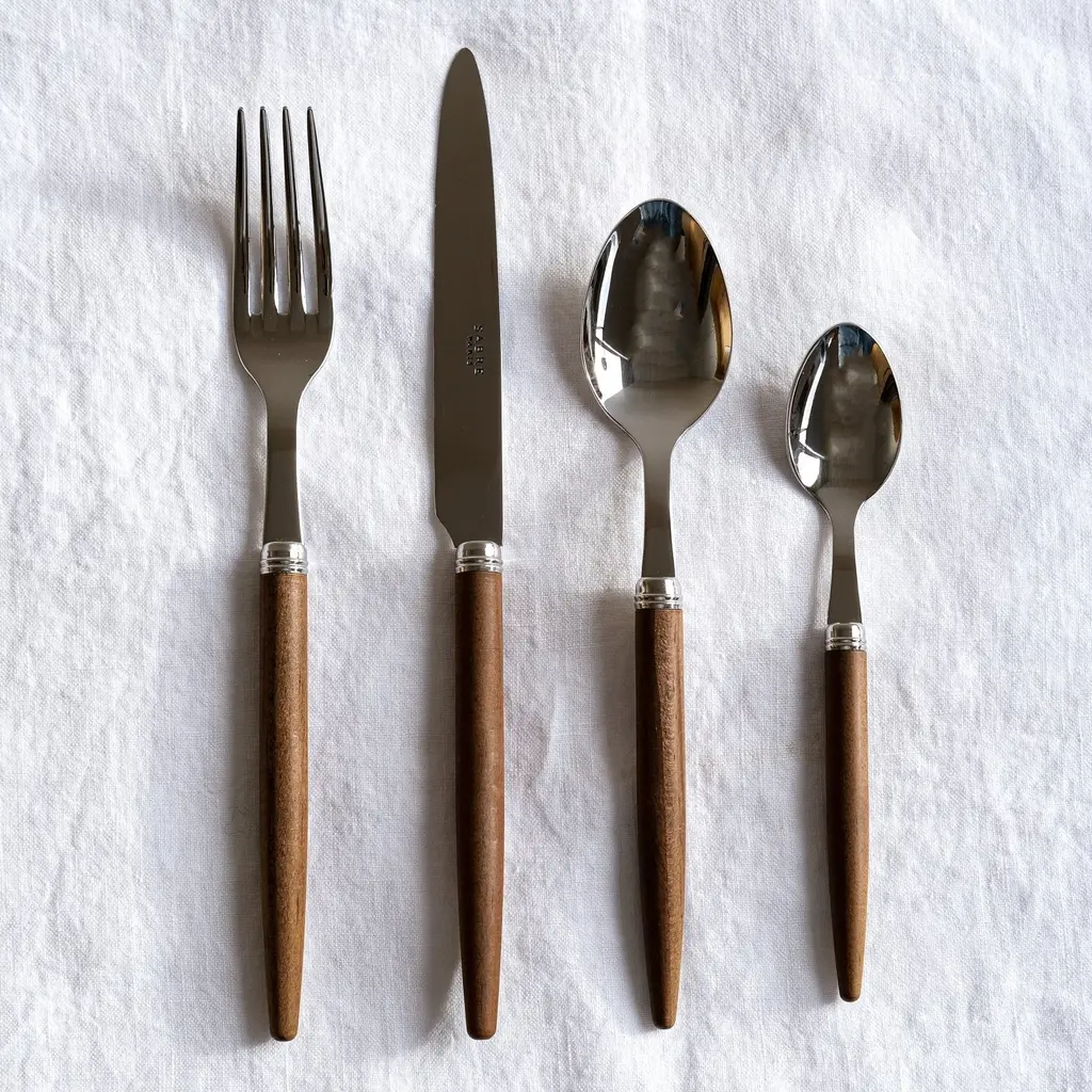 A model of pure finesse and minimalist elegance, the Jonc Cutlery Set from Sabre Paris is a study in refined design. Inspired by the long, slender handles of artists' brushes, this beautiful set features a straight, thin wood handle for a contemporary and sophisticated feel. The high-quality stainless steel and minimalist connector create a perfect transition, resulting in a balanced and timeless silhouette. A fusion of simple form and quality materials, it’s a stunning and versatile set for the modern table. Highlights: