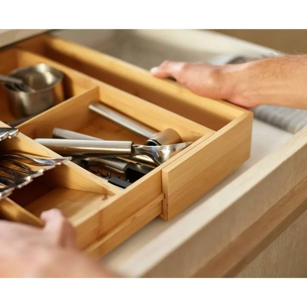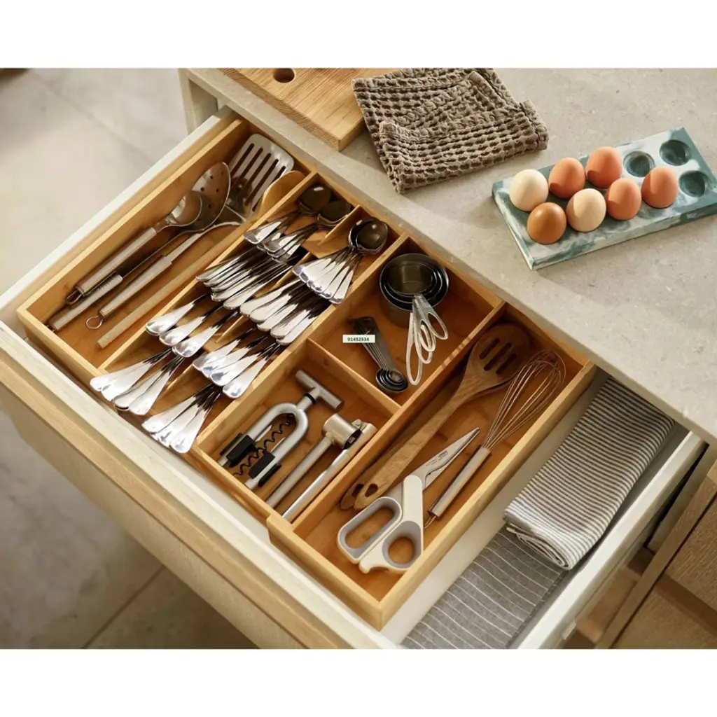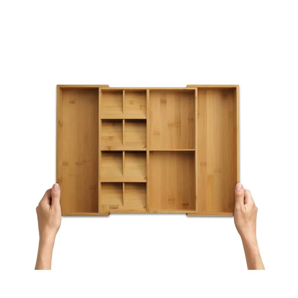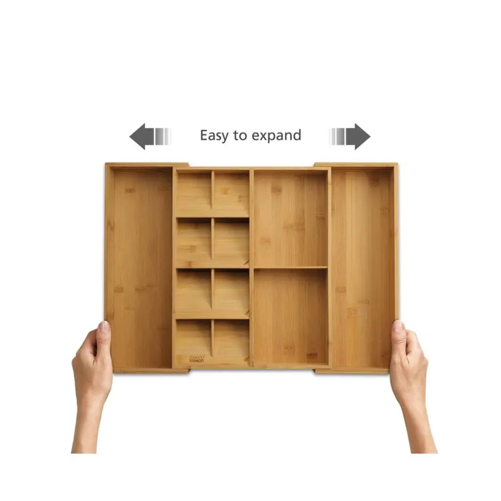 Joseph Joseph Bamboo Expanding Utensil And Cutlery Drawer Organizer: Wide Silverware & Utensil Holder, Brown, 2.75" Height