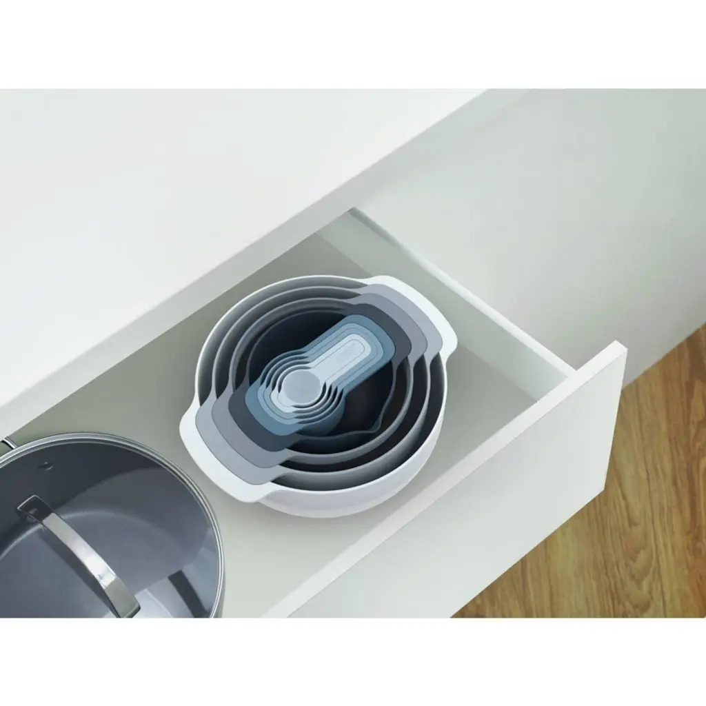 Joseph Joseph Nest 9 Plus 9Pc Food Preparation Set - Sky: Stainless Steel Mixing Bowl Set, Dishwasher-safe, Nonslip Base