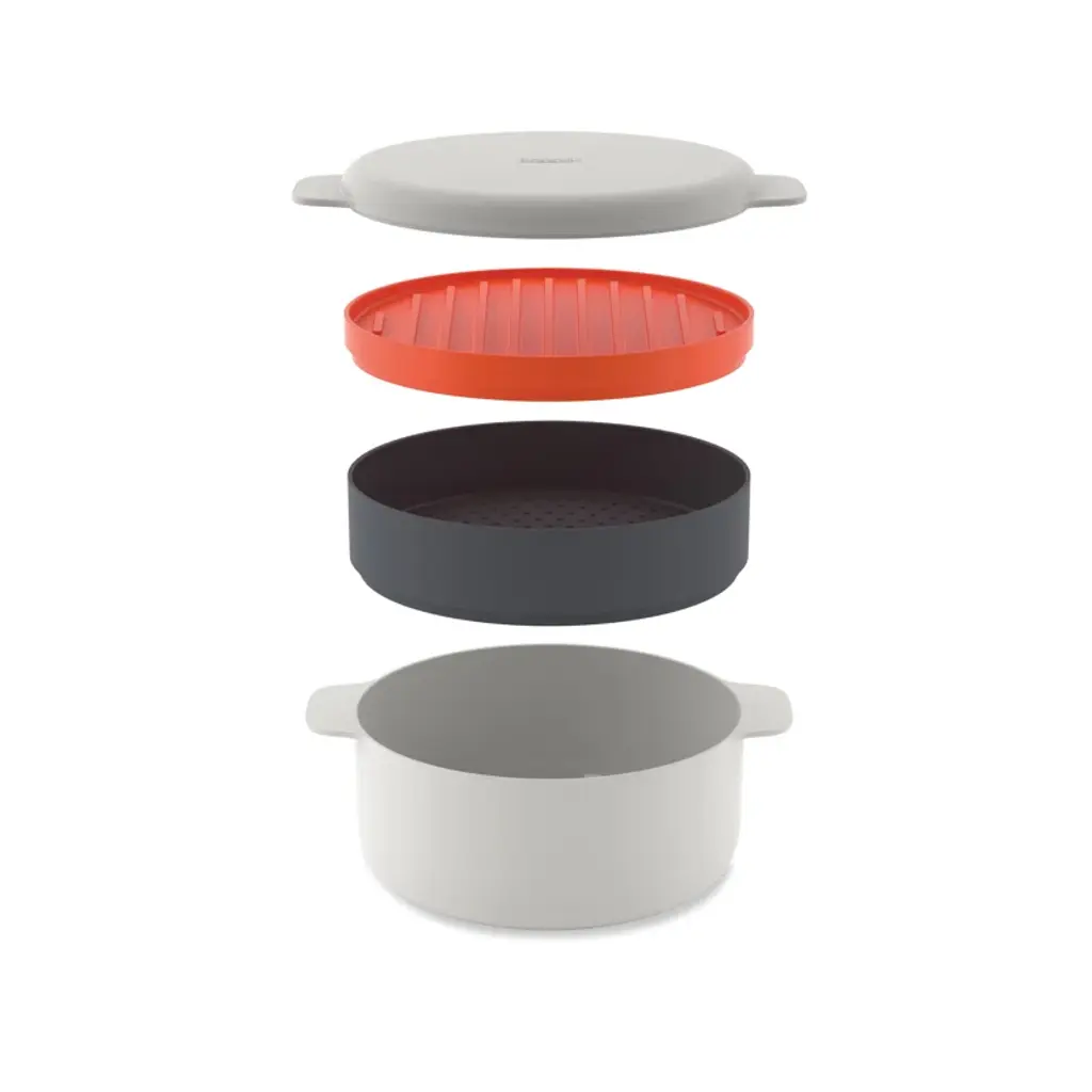 Nest™ is the ultimate collection of space-saving kitchenware. The unique design allows the individual elements within each set to be stacked neatly together, thereby occupying the absolute minimum amount of space. In this distinct and functional design, the mixing bowls have large non-slip bases and wide carry handles. The small mixing bowl includes measurements inside (ml/fl.oz) for added convenience and a spout for accurate pouring. The measuring cups have been designed to snap together securely and allow measurements from 1 teaspoon (5 ml) to 1 cup (250 ml) to be made. A stainless-steel mesh sieve and a large colander complete the collection of food preparation items.