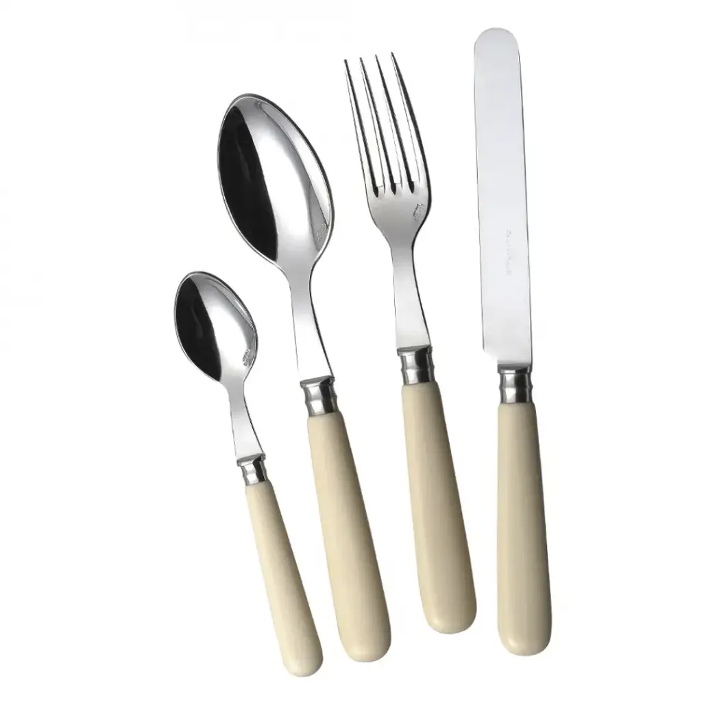 Alain Saint Joanis is a family-owned company that has been creating and manufacturing fine flatware in the purest tradition of French cutlery since 1876. These top-of-the-line collections are made with the finest quality silverplate and 18/10 stainless steel, with handles handcrafted from authentic, raw materials such as exotic woods, resins and enamels. All Alain Saint Joanis flatware is hand-assembled and hand-polished in France, and is dishwasher safe. Five-piece setting includes dinner knife, dinner fork, salad fork, soup spoon, and tea spoon.