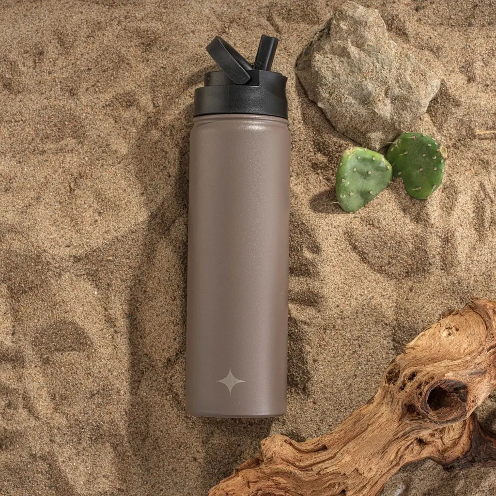 Joyjolt Triple Insulated Stainless Steel Water Bottle With Flip Lid & Sport Straw Lid - 22 Oz - Desert Taupe