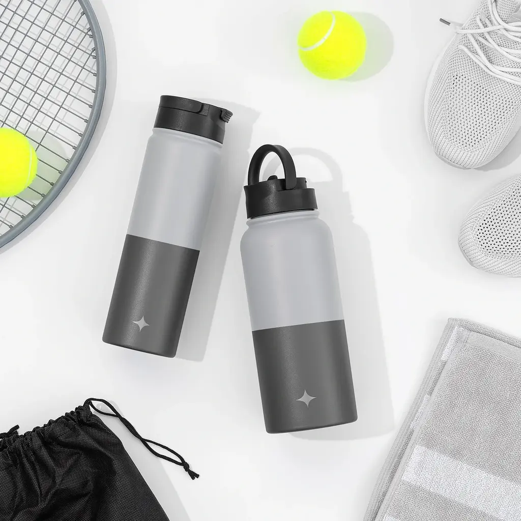 Joyjolt Triple Insulated Stainless Steel Water Bottle With Flip Lid & Sport Straw Lid - 22 Oz - Grey
