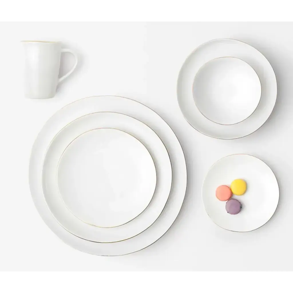 The stoneware Julianna, beautifully crafted in Portugal, has an air of elegance, with just enough movement to save it from formality. A gold-leaf trim adds a delicate touch, making it a foundational set with just a hint of glam. Material: Stoneware. Blue Pheasant's products are handmade with care by artisans using natural materials. They are not mass produced, so variation between products should be expected, and this is why we love them! It is these irregularities that makes Blue Pheasant what it is—a special brand whose collections are distinctly handmade, full of charm and originality you’ll never find in machine-made products.