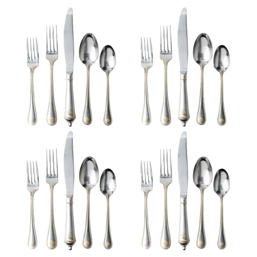 Juliska Berry & Thread Bright Satin Steel Gold Accent 20 Piece Flatware Set