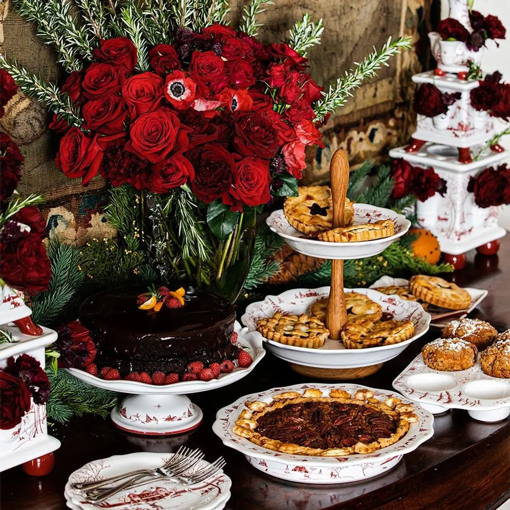 Juliska Country Estate Winter Frolic Ruby Ceramic Cake Stand