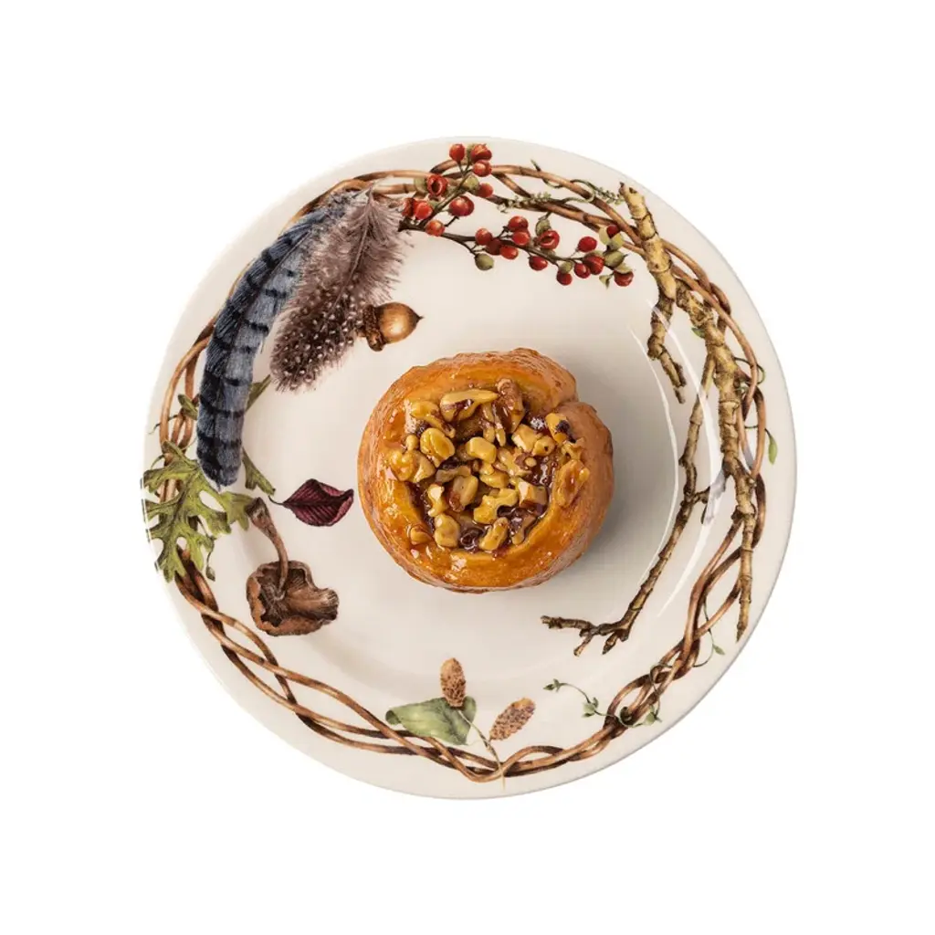 From our Forest Walk collection- rustic organic elements like twigs and acorns, festoon the borders of these plates in a rich color palette of gorgeously tangled elegance - creating an irresistible display for nibbles, tidbits, and gourmet pleasures.