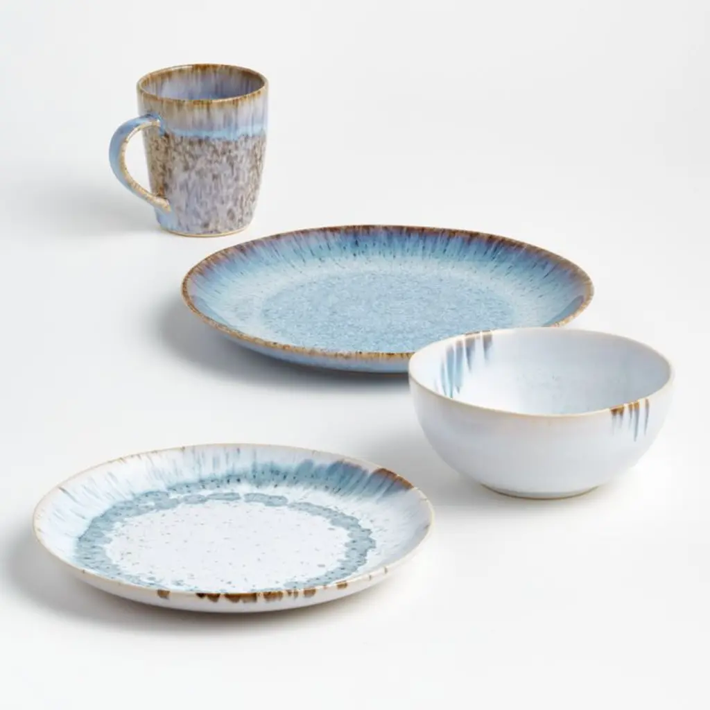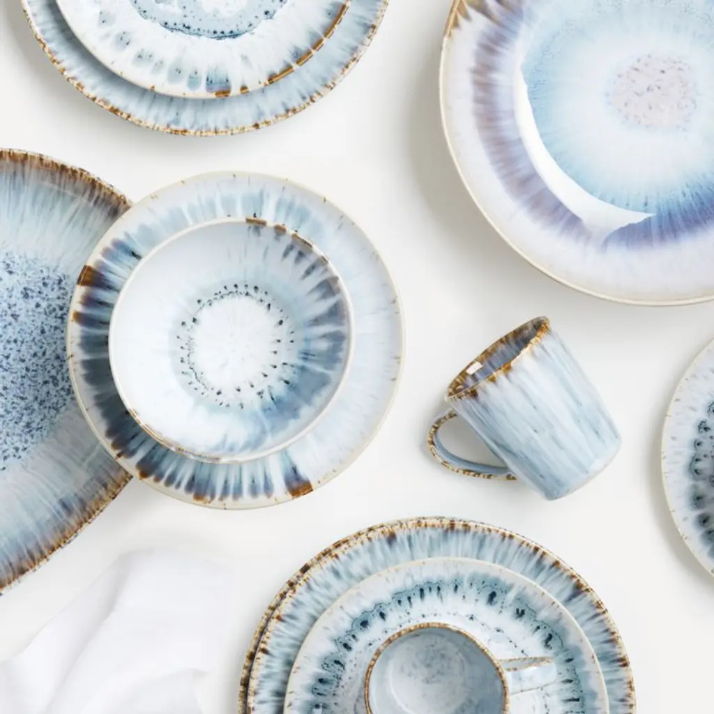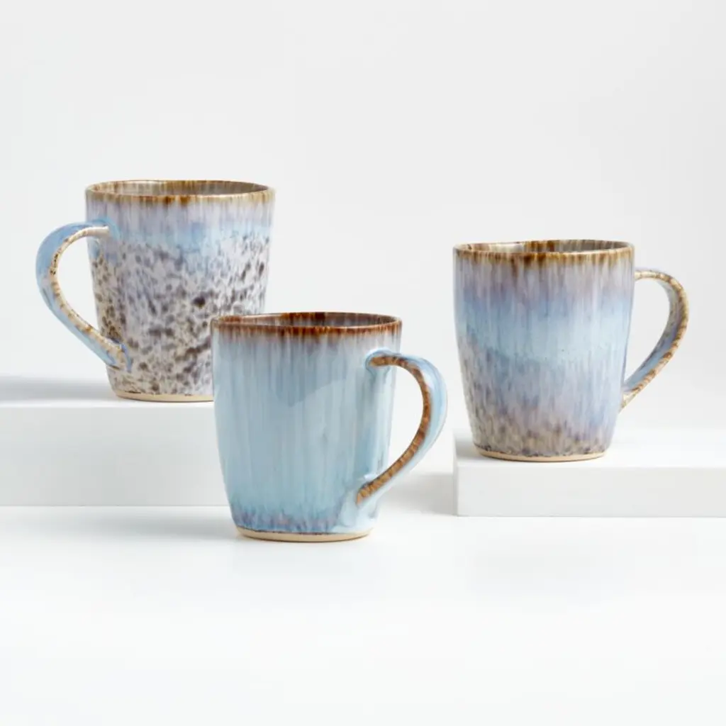 Ranging from barely there to deeply saturated, streaks of blue and brown reactive glaze spiral a one-of-a-kind swirl on our white Julo mug for an ethereal look. Crafted in Portugal, this dishwasher-safe mug makes a beautiful and unique vessel for coffee, tea and apple cider. To set a coordinated table, add the other pieces in our Julo blue-and-white dinnerware and serving collection. Due to the reactive glazes, the hues and pattern will vary considerably.