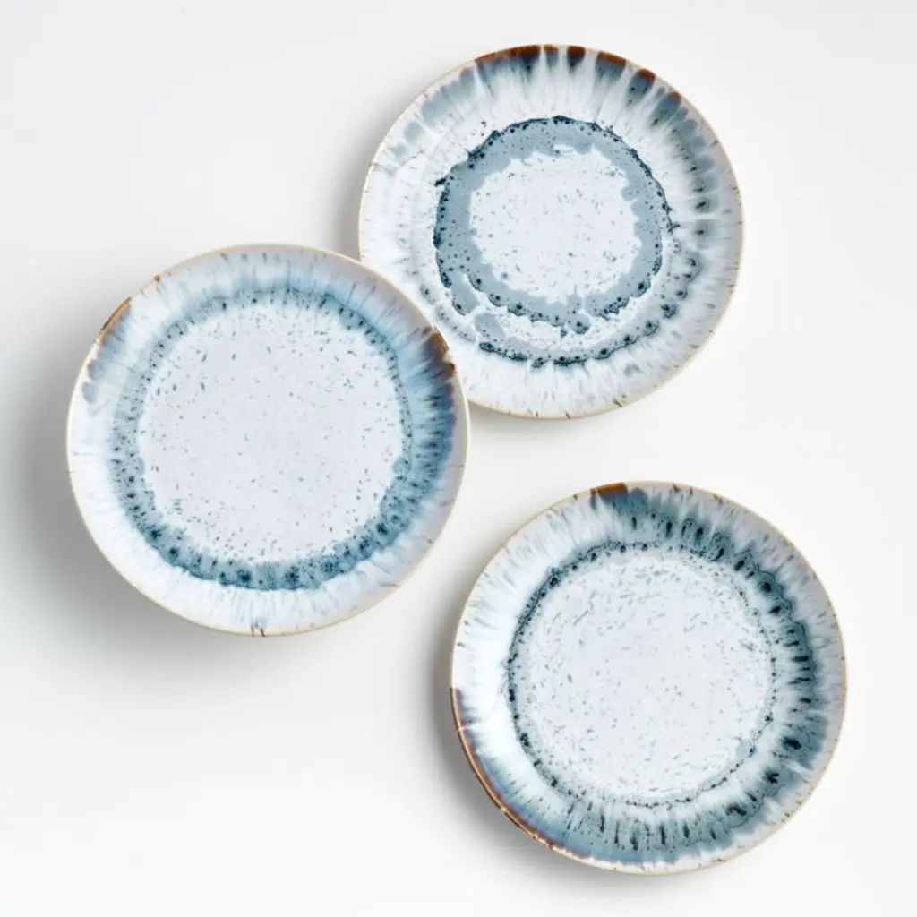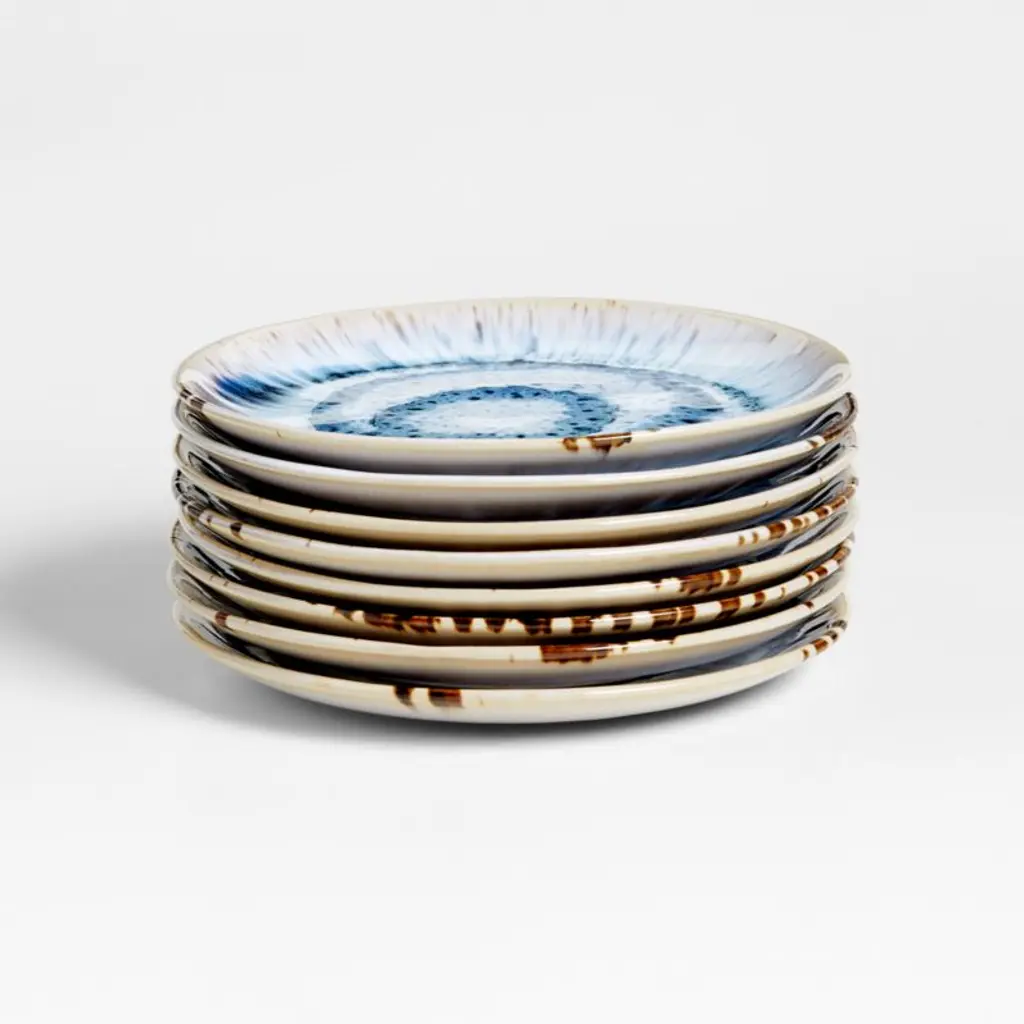 Ranging from barely there to deeply saturated, streaks of blue and brown reactive glaze spiral a one-of-a-kind swirl on our white Julo salad plate for an ethereal look. Crafted in Portugal, this oven-safe plate makes a beautiful and unique presentation for breakfast pastries, side salads and desserts. To set a coordinated table, add the other pieces in our Julo blue-and-white dinnerware and serving collection. Due to the reactive glazes, the hues and pattern will vary considerably.