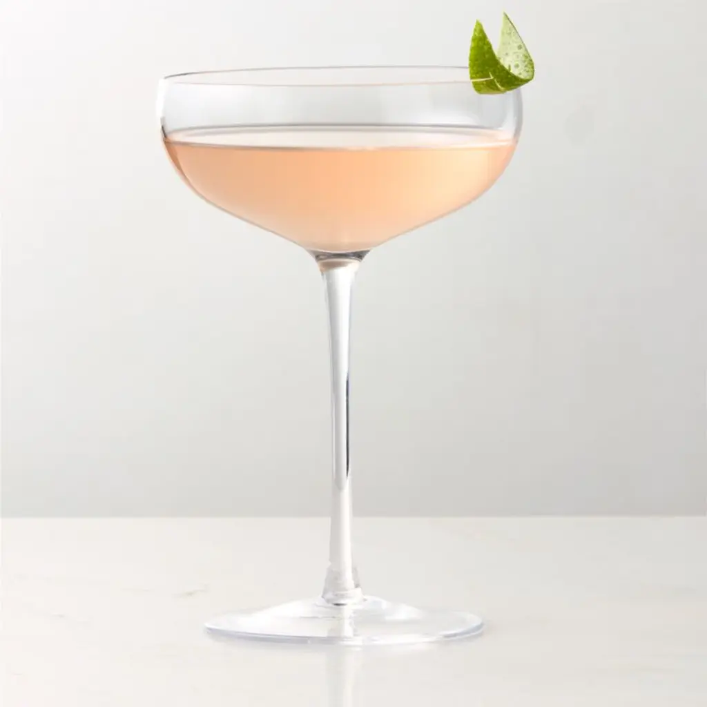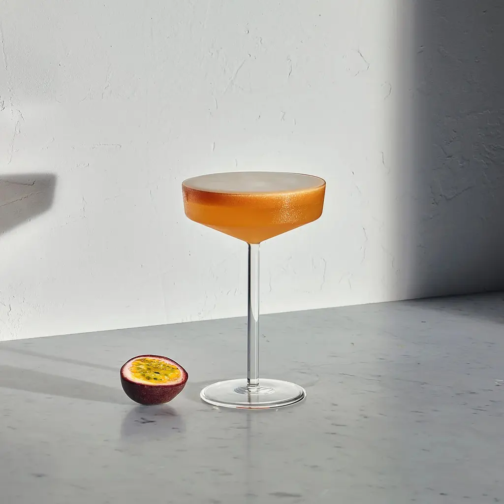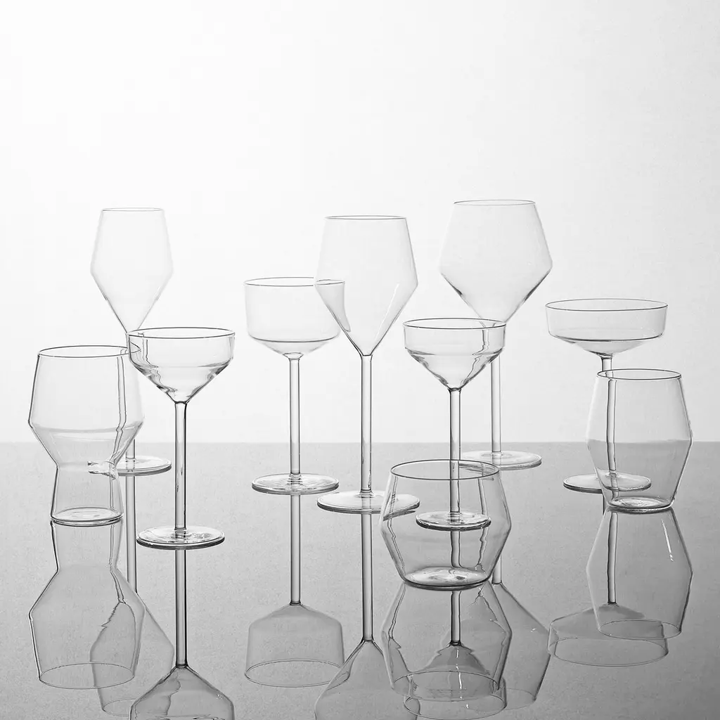 A stemmed cocktail glass from Aaron Probyn’s Juniper collection. With a wide, shallow bowl balanced on a long, slim stem, this glass is sized for martinis, coupes, or other shaken cocktails. The geometric base adds weight and stability while giving the design a sharp, graphic profile. Perfect for serving classics like a martini or a daiquiri, the set works equally well for sparkling wine or smaller desserts. Functional, durable, and visually striking, it’s made to be used often and displayed proudly.