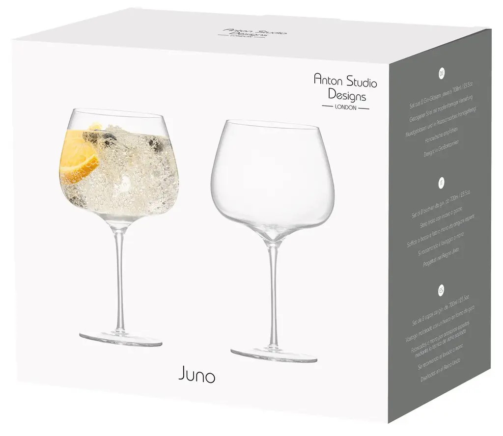 The Juno Gin Glasses combine contemporary style with practicality, featuring a wide bowl to showcase garnishes beautifully. Perfect for entertaining, these glasses make every drink feel special. Mouth blown and handmade by skilled craftsmen.