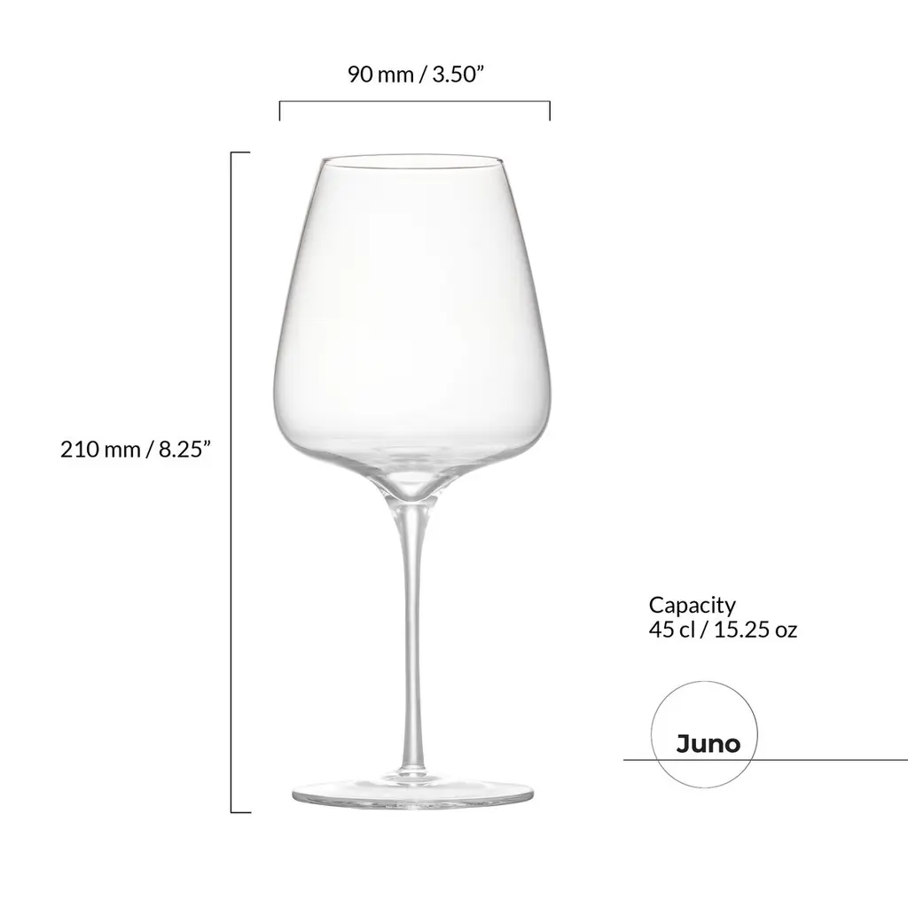 Delight in crisp, refreshing wines with the Juno White Wine Glasses. Designed with a modern silhouette, they elevate both casual and formal dining experiences. Mouth blown and handmade by skilled craftsmen.