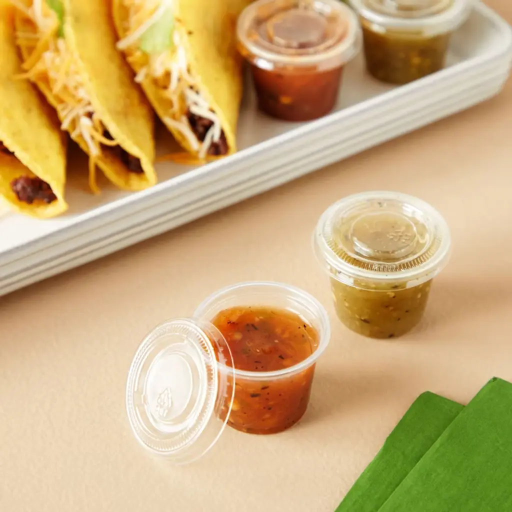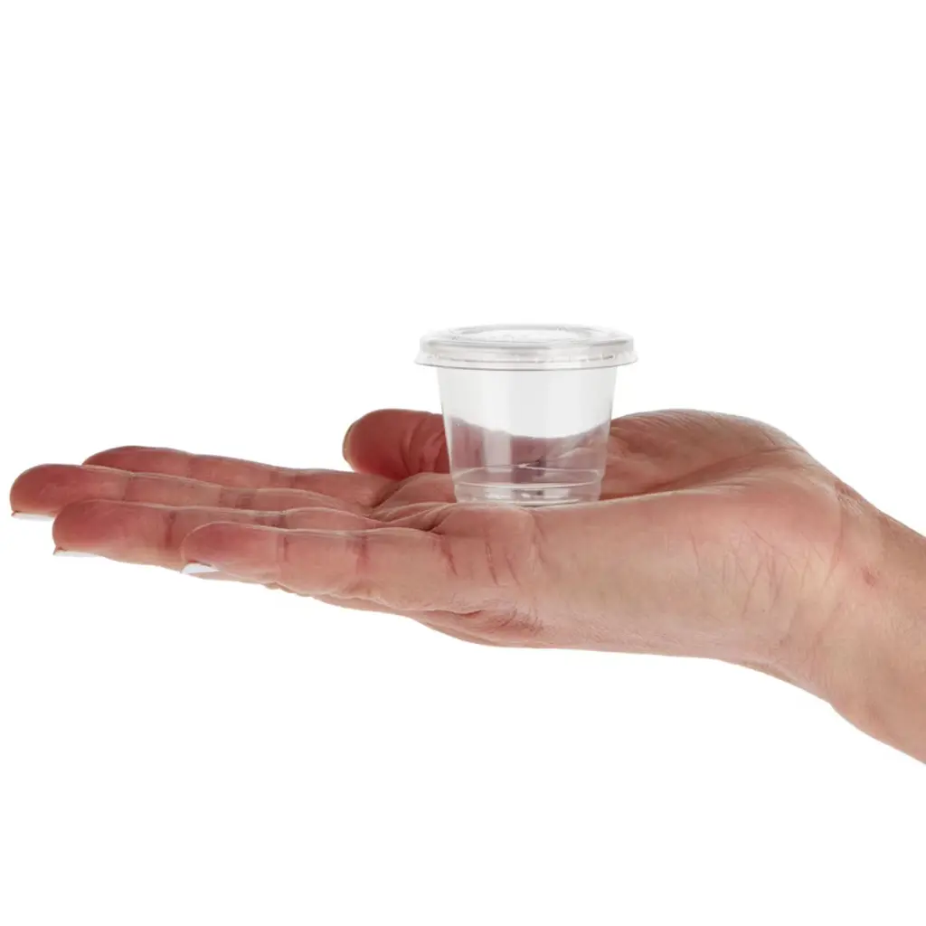 These small containers are ideal for sample tasting, party shots, condiments, sauces, or even for use as communion cups with lids. Each container holds 1 ounce of liquid or solid food and comes with a matching lid, so you don't have to worry about any spills or leaks. The clear design of the cups allows for easy visibility, so you can easily identify what is inside each cup. These sample cups with lids 1 ounce are made of high-quality plastic that is both durable and lightweight. They are also disposable, making clean up a breeze after your event is over. With a bulk pack of 500 cups and lids, you'll have plenty to serve all your guests without having to constantly refill or restock. These disposable portion cups with lids are not only great for parties and events but also for food service businesses such as restaurants, cafes, and food trucks. They are perfect for portion control and are ideal for condiments, dressings, and sauces. The compact size of each container makes them easy to stack and store, so you can easily take them with you wherever you go. Whether you are having a picnic, a barbecue, or a pool party, these disposable portion cups with lids are a must-have item for any event.