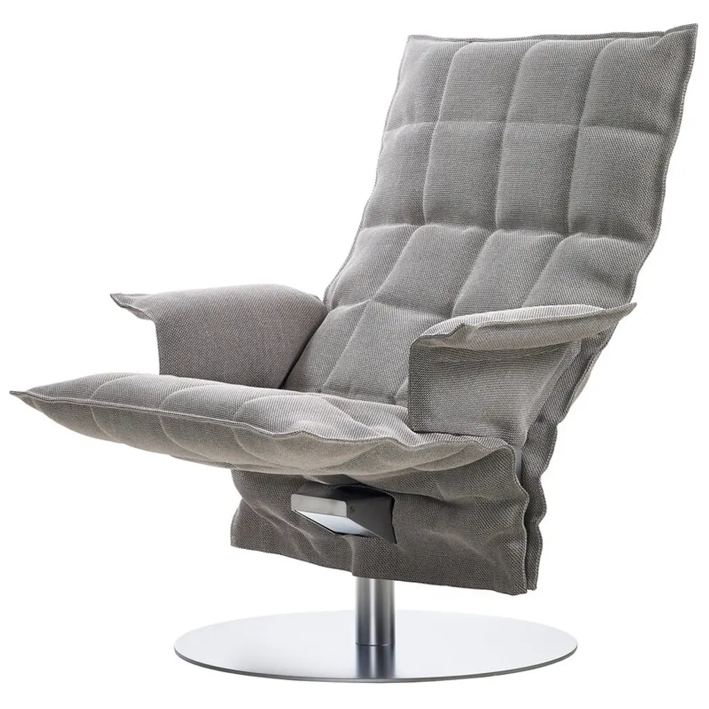 The K chair by the Finnish company Woodnotes is a generous lounge chair with a relaxed, refined appearance that works equally well in private and public environments. The K chair has a robust steel tube frame and removable upholstery made of a blend of paper yarn and cotton with soil-repellent treatment. The visible steel parts are coated with a matt chrome finish. You can complement the ultimate lounging experience with the matching K ottoman. Designed by Harri Koskinen for Woodnotes, the K chair is a modern classic of Finnish design. It was granted the Interior Innovation Award at Cologne’s International Furniture Fair in 2004.