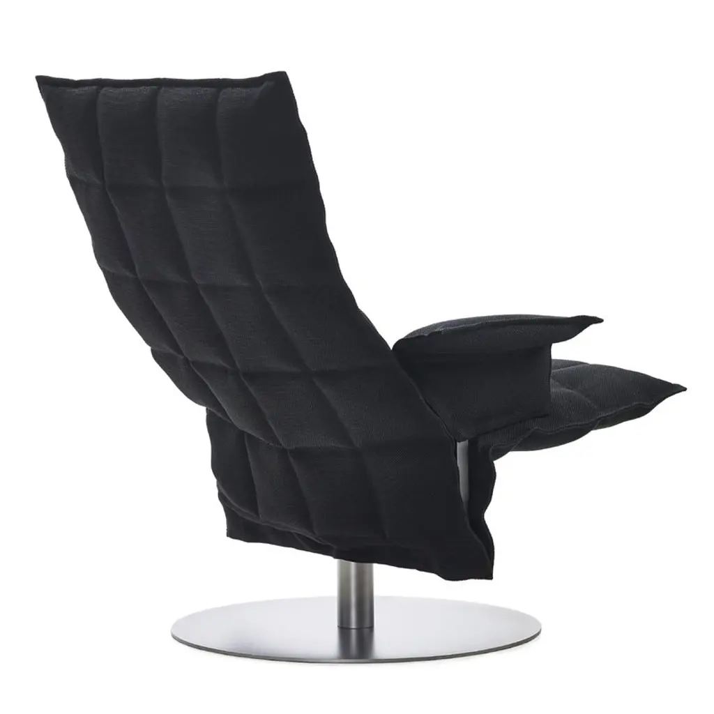 The K chair by the Finnish company Woodnotes is a generous lounge chair with a relaxed, refined appearance that works equally well in private and public environments. The K chair has a robust steel tube frame and removable upholstery made of a blend of paper yarn and cotton with soil-repellent treatment. The visible steel parts are coated with a matt chrome finish. This K chair is perfected with comfortable armrests, and if you like, you can complement the ultimate lounging experience with the K ottoman. Designed by Harri Koskinen for Woodnotes, the K chair is a modern classic of Finnish design. It was granted the Interior Innovation Award at Cologne’s International Furniture Fair in 2004.