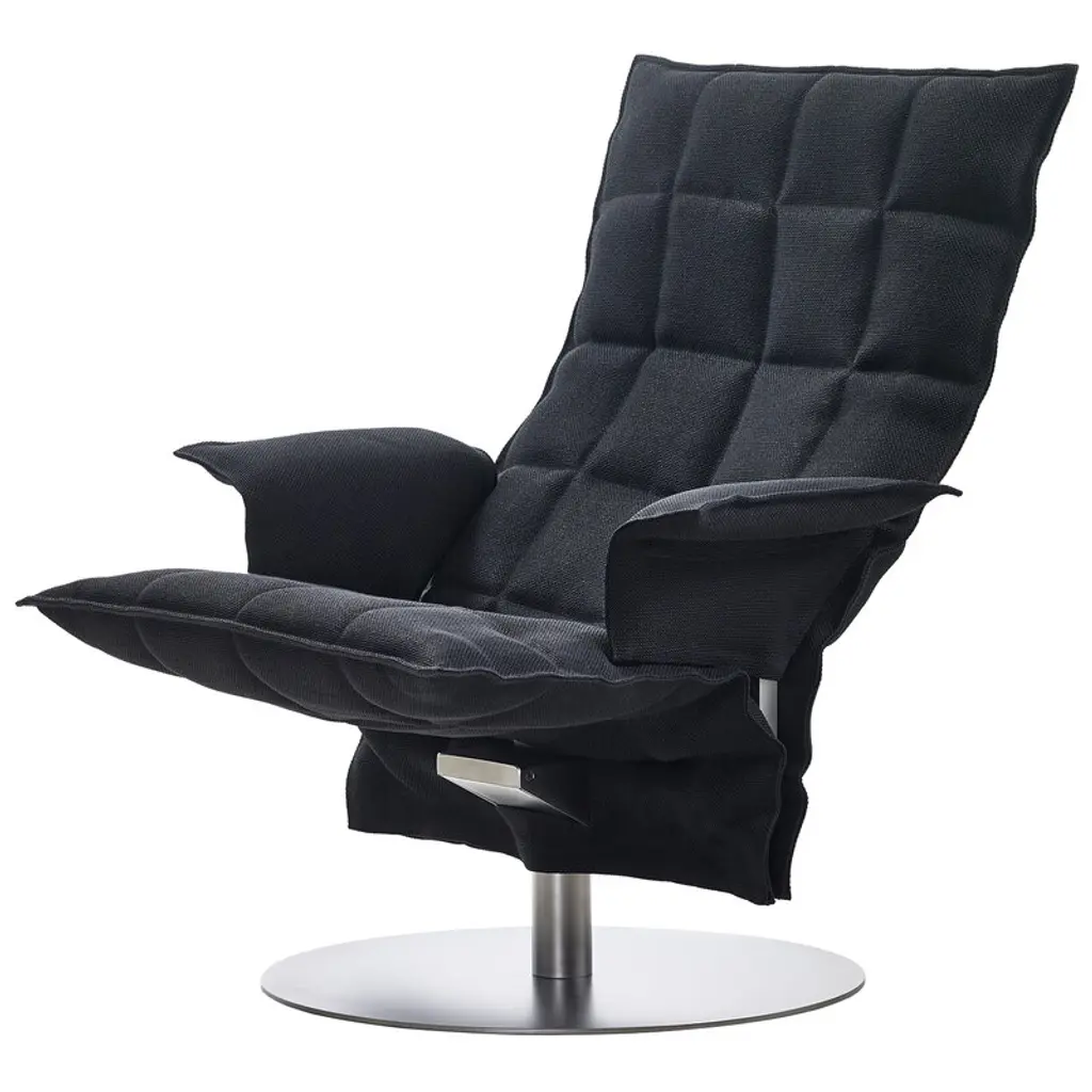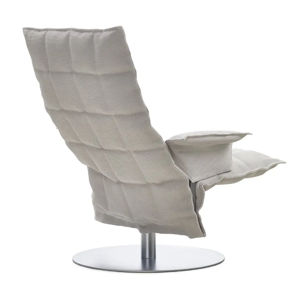 The K chair by the Finnish company Woodnotes is a generous lounge chair with a relaxed, refined appearance that works equally well in private and public environments. The K chair has a robust steel tube frame and removable upholstery made of a blend of paper yarn and cotton with soil-repellent treatment. The visible steel parts are coated with a matt chrome finish. This K chair is perfected with comfortable armrests, and if you like, you can complement the ultimate lounging experience with the K ottoman. Designed by Harri Koskinen for Woodnotes, the K chair is a modern classic of Finnish design. It was granted the Interior Innovation Award at Cologne’s International Furniture Fair in 2004.