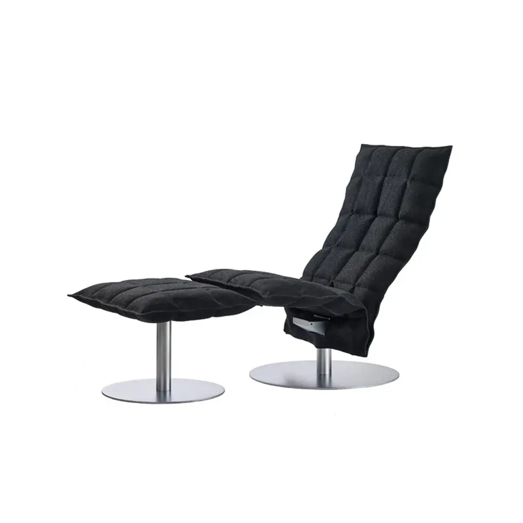 The K ottoman by the Finnish company Woodnotes has a relaxed, refined appearance that works equally well in private and public environments. The K ottoman features a robust steel tube frame and removable upholstery made of a blend of paper yarn and cotton with soil-repellent treatment. The visible steel parts are coated with a matt chrome finish. The K ottoman is the perfect companion for the K chair from the same series, and it can also be used independently in a variety of contexts. Designed by Harri Koskinen for Woodnotes, the K chair is a modern classic of Finnish design. It was granted the Interior Innovation Award at Cologne’s International Furniture Fair in 2004.
