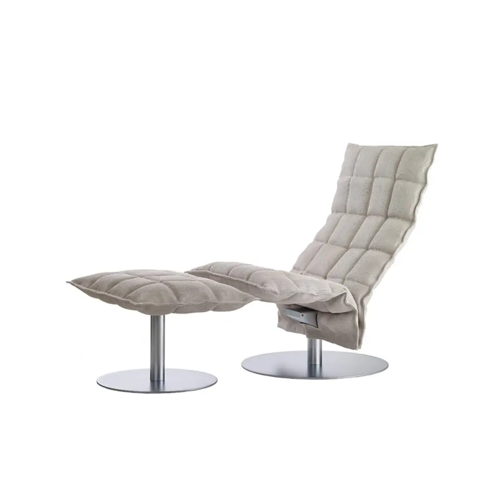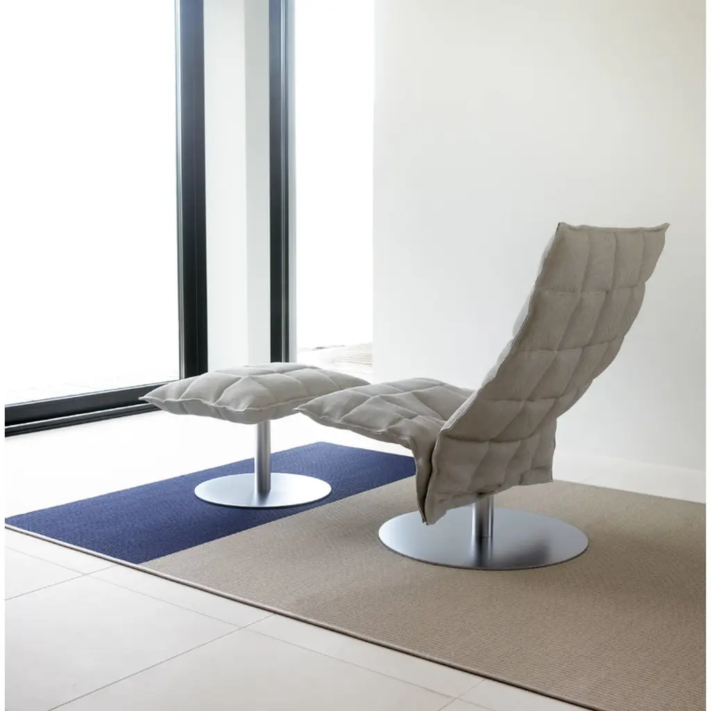The K ottoman by the Finnish company Woodnotes has a relaxed, refined appearance that works equally well in private and public environments. The K ottoman features a robust steel tube frame and removable upholstery made of a blend of paper yarn and cotton with soil-repellent treatment. The visible steel parts are coated with a matt chrome finish. The K ottoman is the perfect companion for the K chair from the same series, and it can also be used independently in a variety of contexts. Designed by Harri Koskinen for Woodnotes, the K chair is a modern classic of Finnish design. It was granted the Interior Innovation Award at Cologne’s International Furniture Fair in 2004.