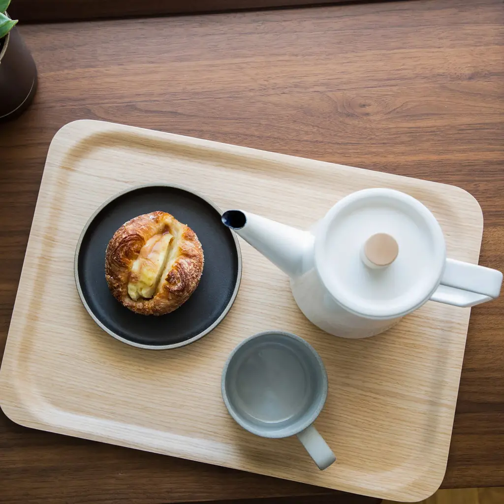 Tokyo based Japanese designer Makoto Koizumi has created this beautifully simple and award-winning cookware series – Kaico. The series includes a tea pot, coffee pot, pasta pot with a steel strainer insert, as well as various sauce pans. The glossy sheen of white enamel is an iconic image for the formality and quiet poignancy of Japanese ceremonies. The Kaico Coffee Pot is made in enamel-coated steel with maple knob.