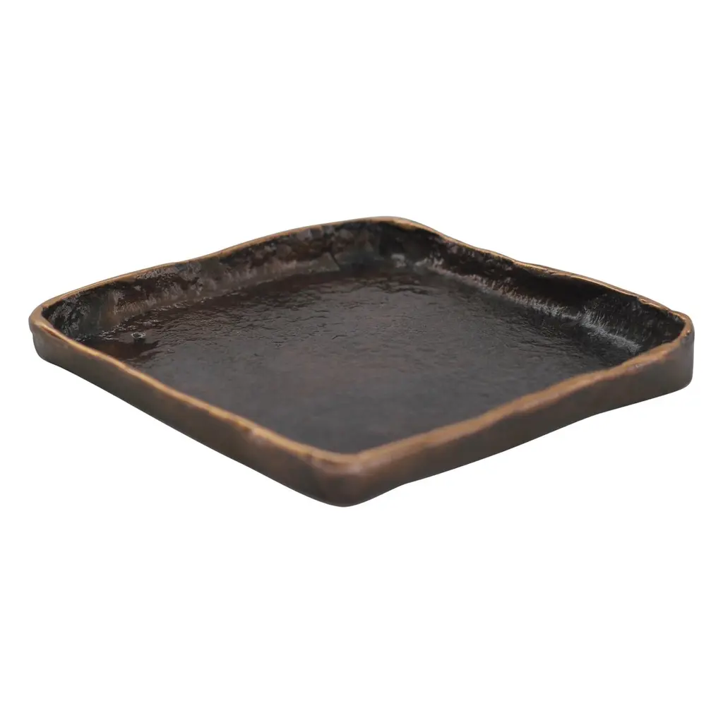 Designed just for us by Aaron Probyn. The metallic finish adds sleek, chic appeal to durable stoneware. Sized to serve your favorite snacks or rolls of sushi. It's microwave and dishwasher safe.