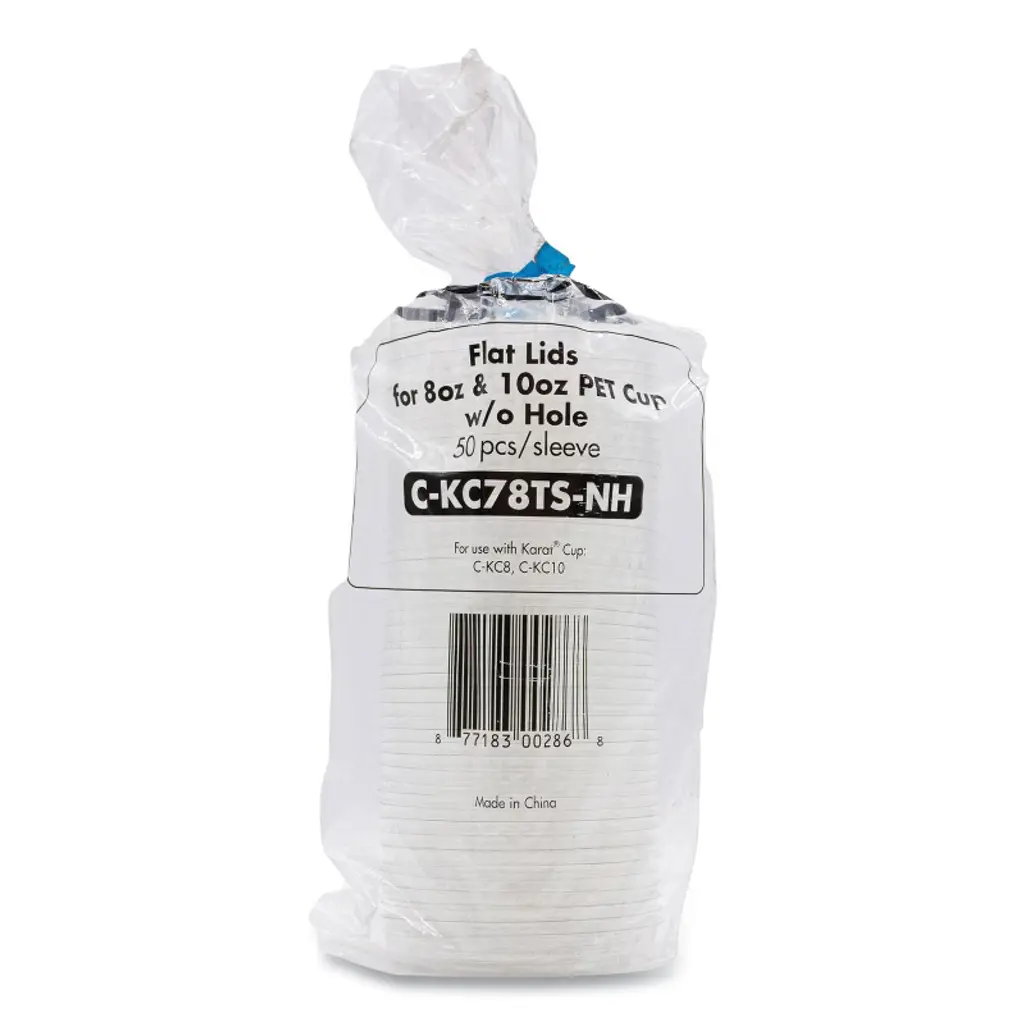 Karat Pet Lids, No Hole Flat Lid, Fits 8 Oz To 10 Oz Cold Cups, Plastic, Clear, 1,000/carton