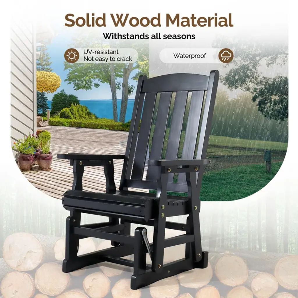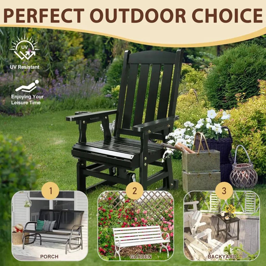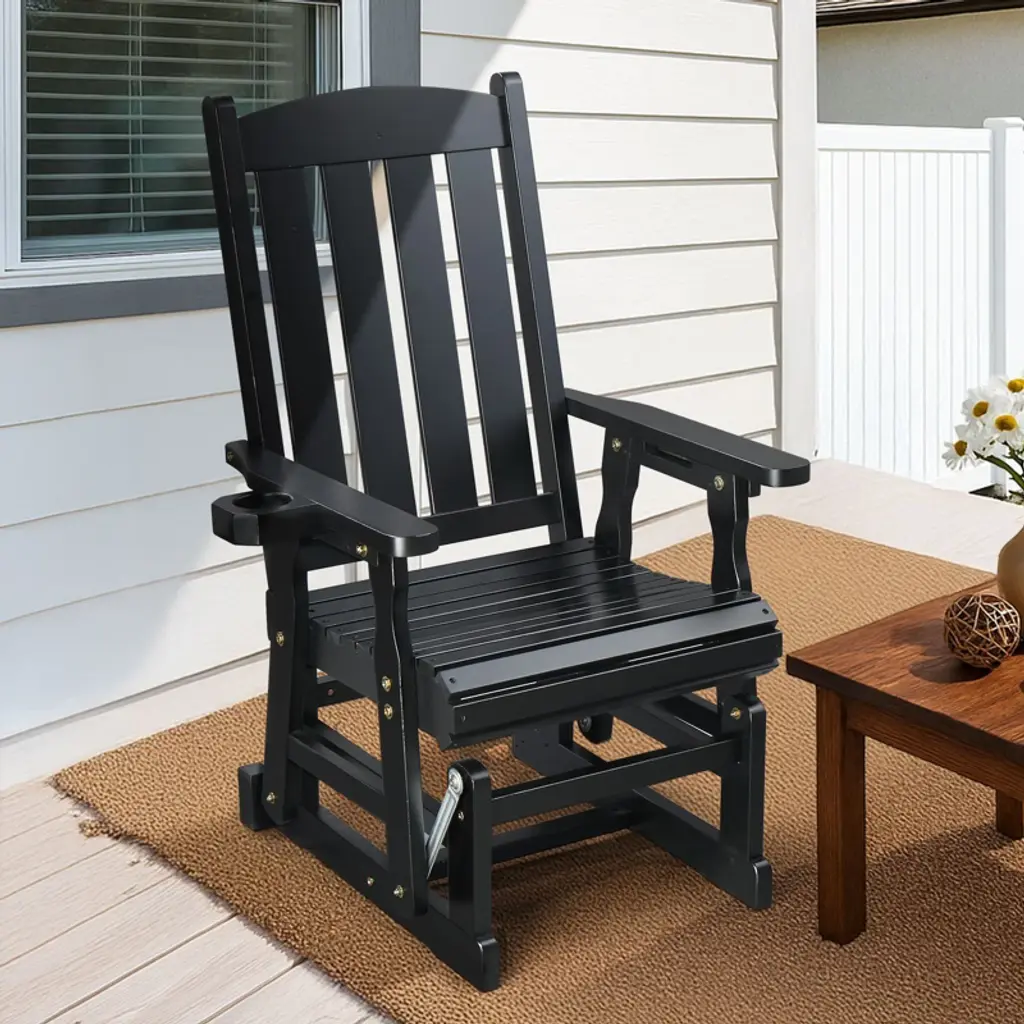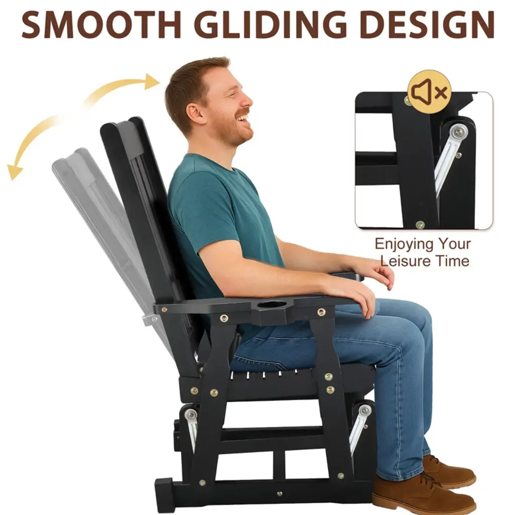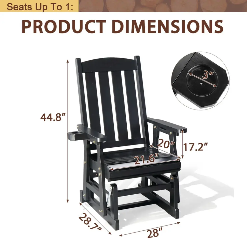 Karl Home | 32 In. Solid Wood Patio Glider Chair With Cup Holder