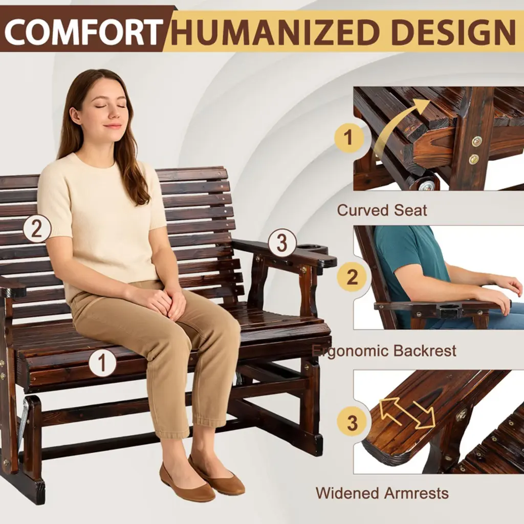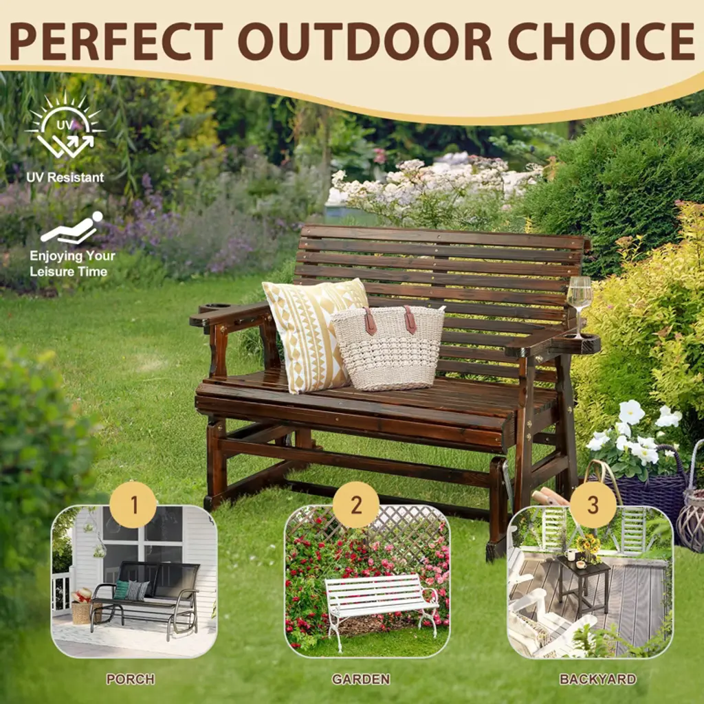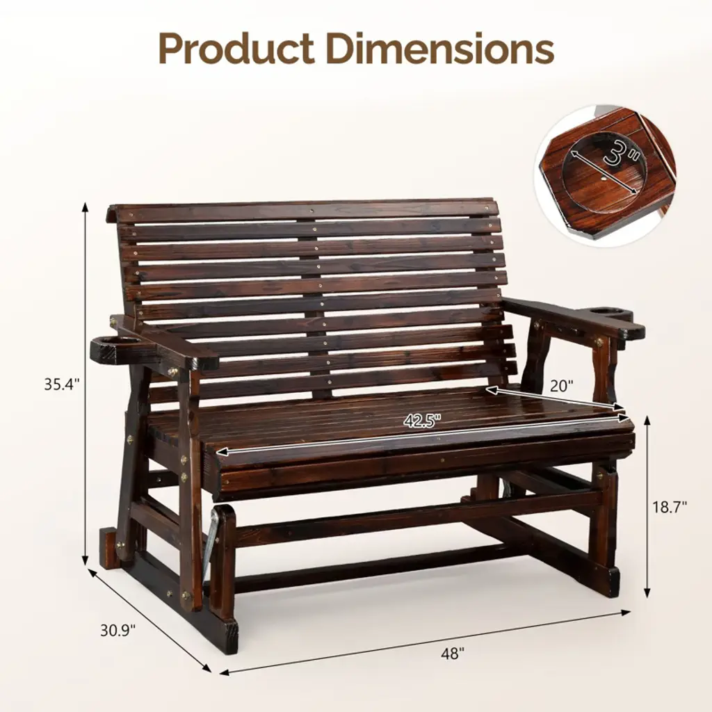 Karl Home | 48 In. Solid Wood Patio Glider Bench With Cup Holder
