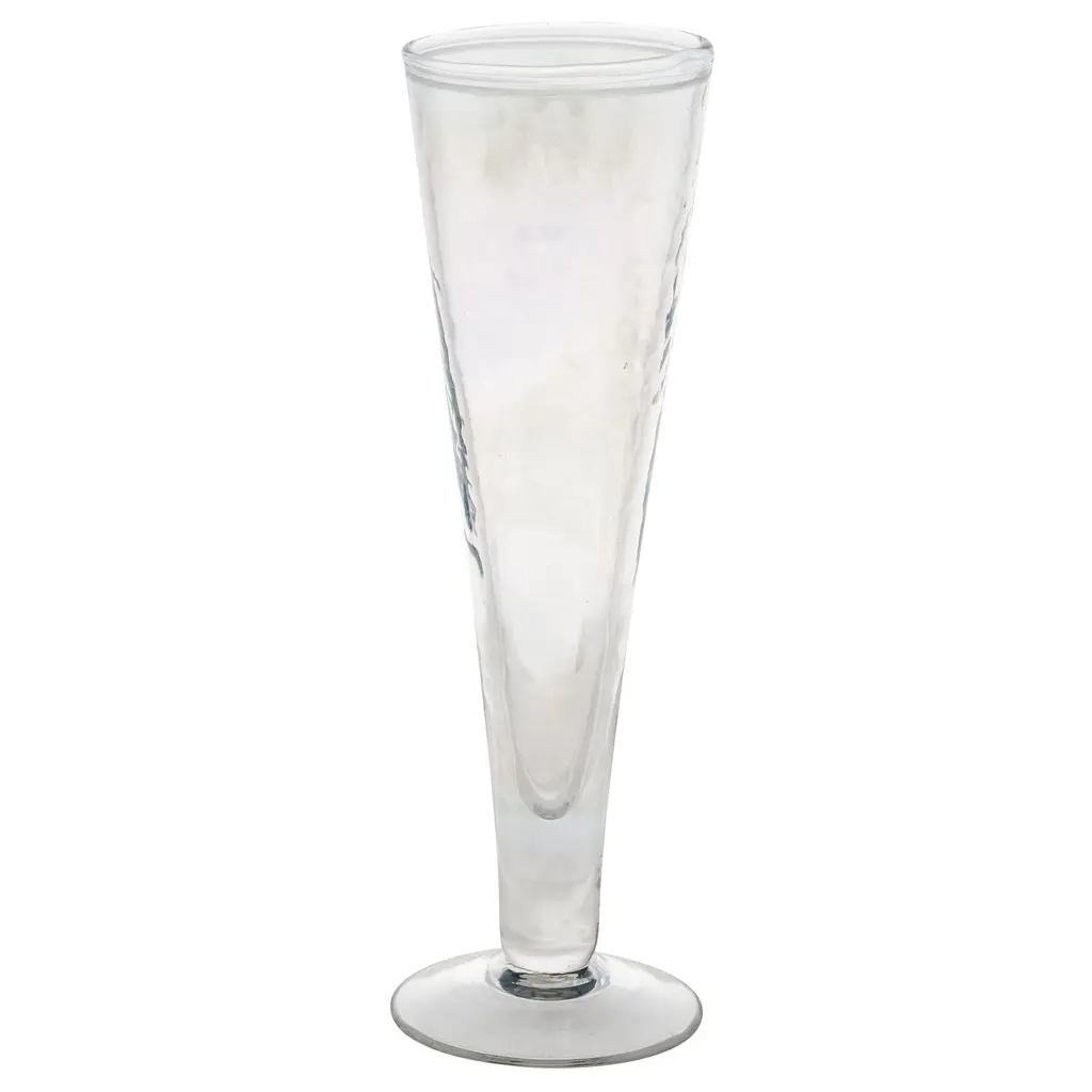 Drink in style with our trendy glass drinkware! Add a pop of color to your glassware and get a full set to make your kitchen complete. These Champagne flutes are versatile and sure to add some decoration to any table or cabinet. They are food safe and available in five different iridescent glass colors.Details Set of 4 Food safe Dimensions Approx. 8.25” Approx. 6.4 oz. Material GlassCare Tips Hand wash