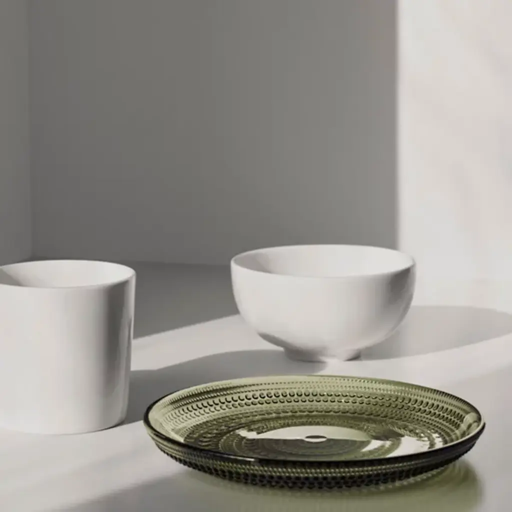 The Iittala Kastehelmi Small Plate has a lacy look and a bubbly texture courtesy of hundreds of glass droplets. This lovely decorative technique was originally devised by Oiva Toikka back in 1964 as a way to hide the seams of pressed glass. Lovely on its own or as a dewy accent to other dinnerware.
