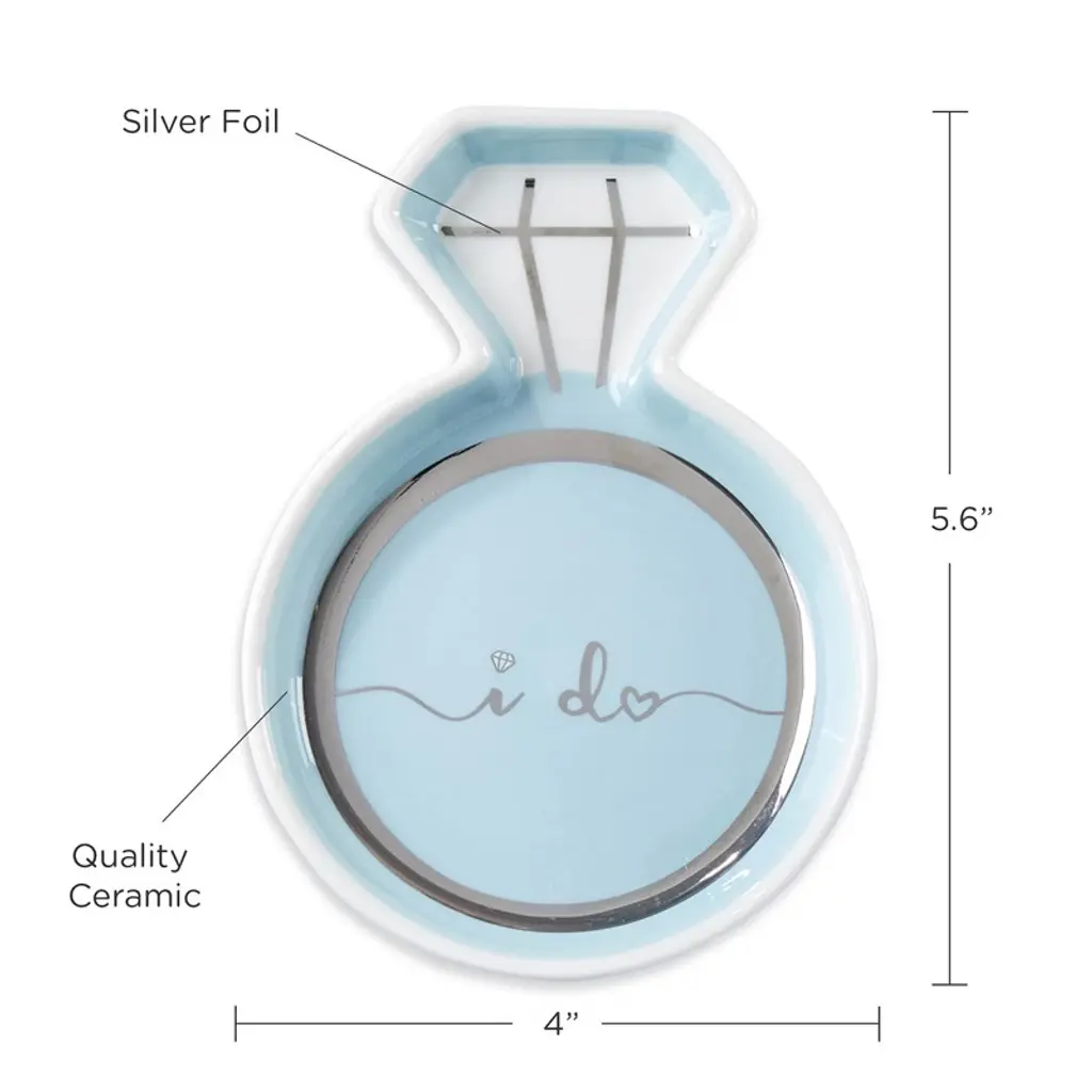 Kate Aspen's Blue Diamond Ring Trinket Dish is just what you need to keep those precious rings safe! The diamond ring shaped trinket dish is made of high-quality ceramic and features a hand painted diamond ring against a blue background. The trinket dish can be used as a bridal party gift, bridal shower prize, or even for taking photos of the rings before walking down the aisle. Not just for rings, this thoughtful bridal party gift can be used to hold any piece of jewelry!