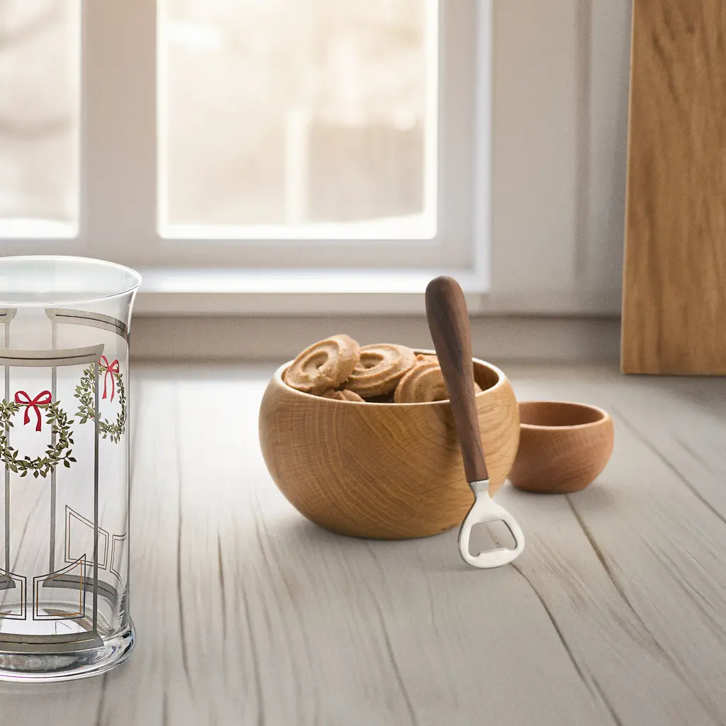 Enjoy opening bottles smoothly and effortlessly with the Kay Bojesen Menageri Bottle Opener. As beautiful as it is practical, this bottle opener combines the chocolate-brown hues of walnut wood with the sleek look of polished stainless steel. The oiled walnut handle has a rounded, tapered shape to fit comfortably into the palm of your hand and provide optimal grip. Easy to use to remove bottle caps quickly, this bottle opener will be a reliable companion for all your moments of relaxation with family and friends. A matching walnut corkscrew for wine bottles is also available.