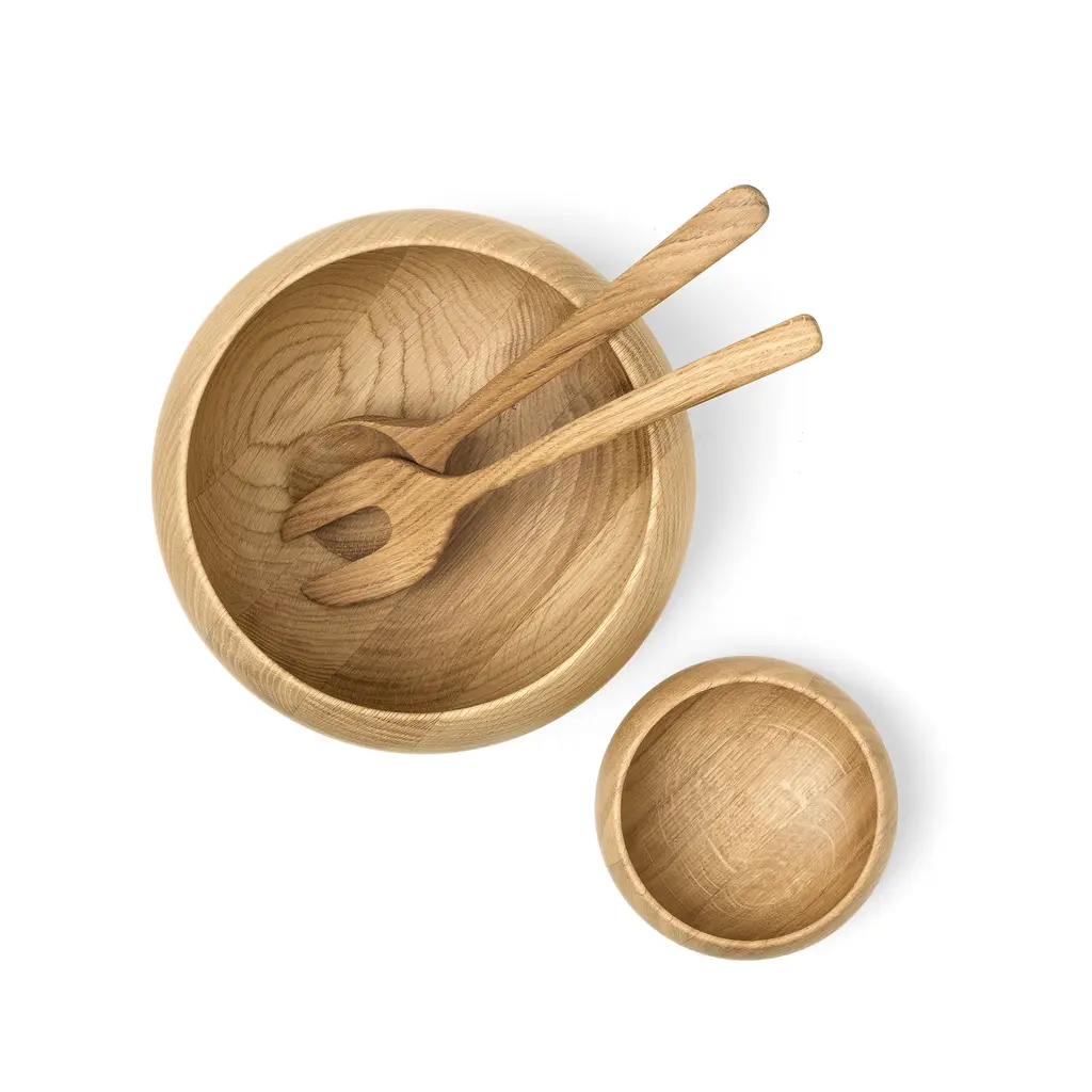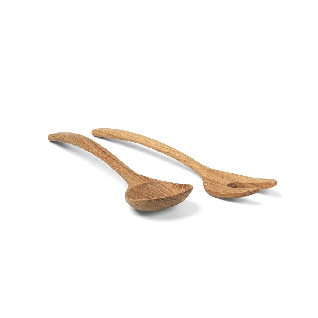 Tactile, smooth and practical, the Kay Bojesen Menageri Cutlery Set is perfect to serve salads and other delicious food to your guests. Crafted from solid oak with an oiled finish, this set is both high-quality and durable. Both the spoon and the fork have subtly curved handles with smoothly rounded edges to feel comfortable to hold. Perfect for everyday meals, special occasions or festive dinners, the Kay Bojesen Menageri Cutlery Set is produced from sustainable, FSC-certified oak with a finish that protects the material from food stains. Use this set on its own or with the matching serving bowls from the same collection.