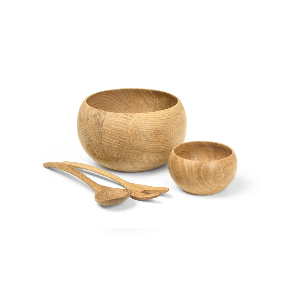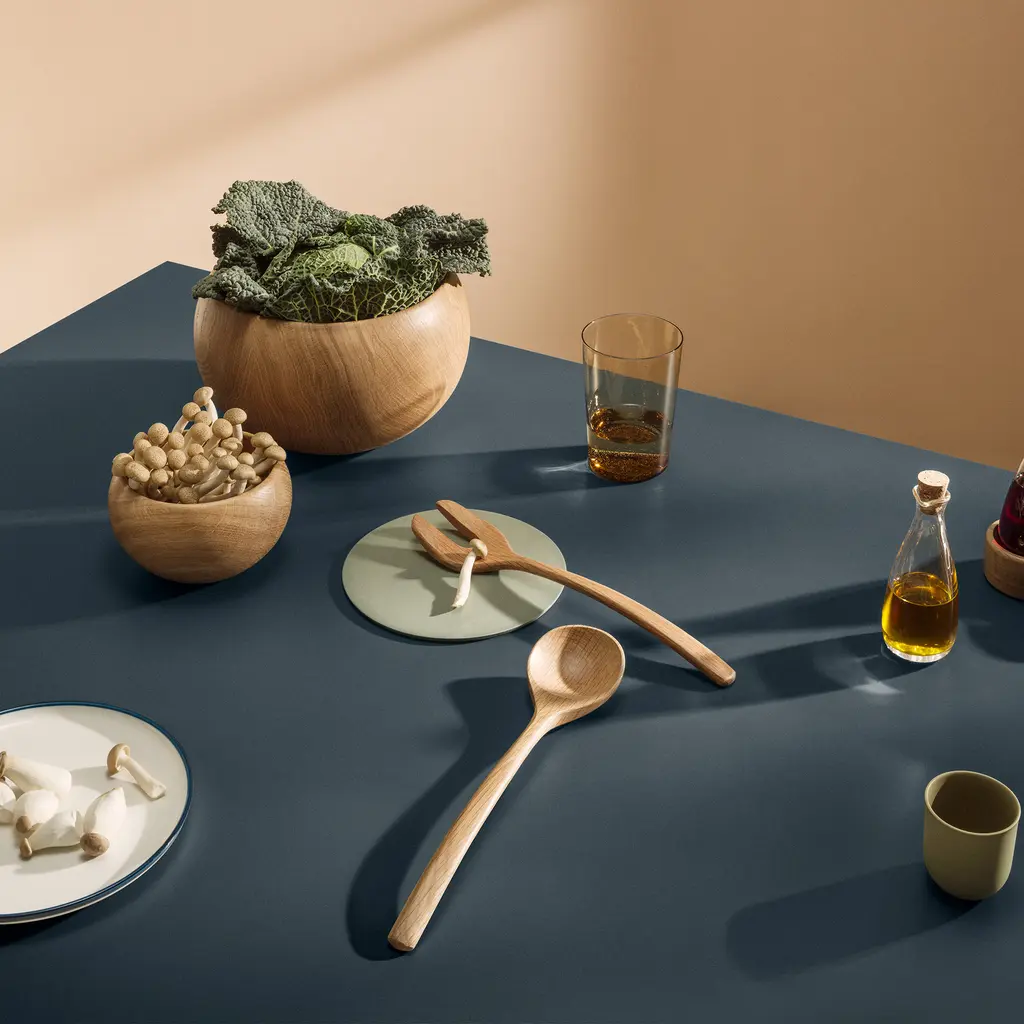 Capturing the soul of Scandinavian design, the Kay Bojesen Menageri Serving Bowl is not only minimalist and beautiful, but it’s also made from solid wood. To create each bowl, artisans use FSC-certified oak that features pronounced grain patterns and natural colors. The rounded shape invites you to wrap your hands around the vessel to appreciate the craftsmanship and the tactile surface of this exceptionally warm material. Perfect for serving a wide variety of dishes, the Kay Bojesen Menageri Serving Bowl measures 5.5″ in diameter. A larger bowl from the same collection is also available, along with wood cutlery, salt and pepper mills, a serving tray, and more.