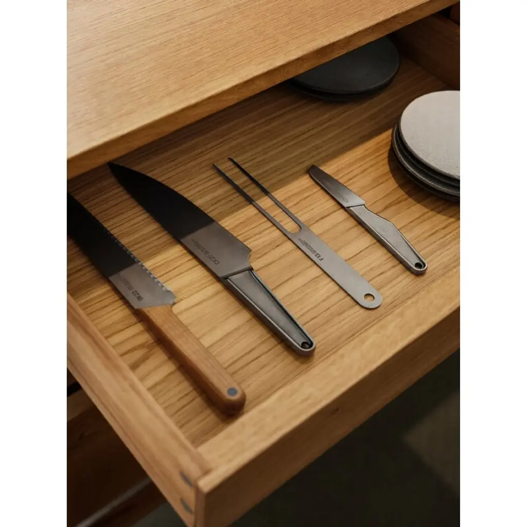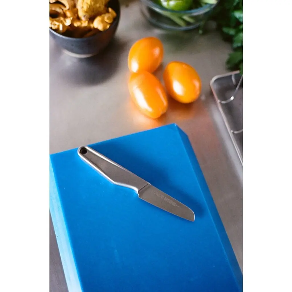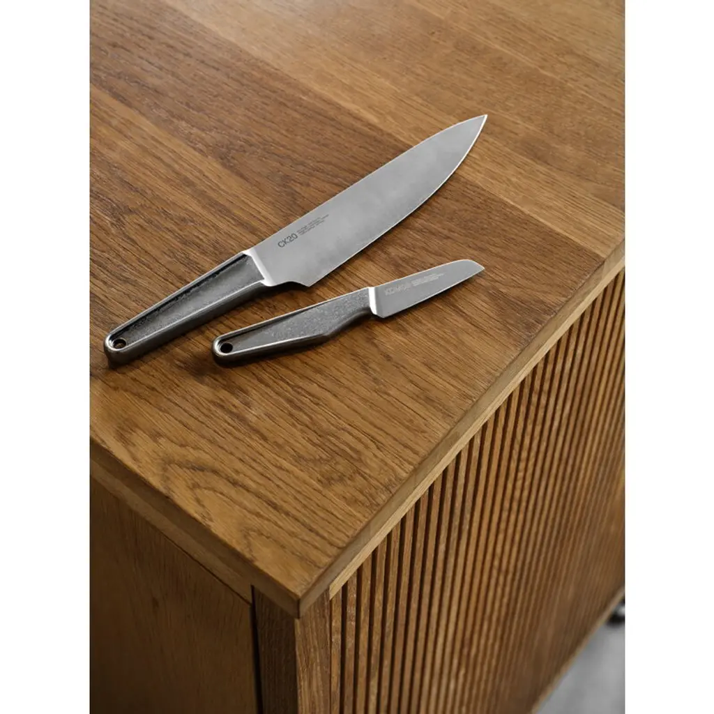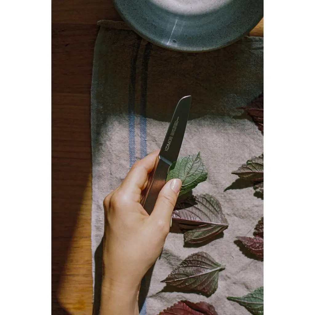 The Veark KDM08 is a Japanese-style Kudamono knife, ideal for chopping small vegetables, chili, garlic and other tasks that require precision. The straight blade shape allows for controlled, accurate cuts, making it a reliable tool for detailed kitchen work. Crafted from high-quality German steel, the KDM08 knife is forged from a single piece of metal, making it seamless, easy to clean and exceptionally durable. The handle’s open design, inspired by a wrench, allows for a secure grip close to the blade’s center of gravity, improving precision and balance. The surface of the handle features a unique texture created by drop forging, giving each knife its own distinctive character. Built to last for generations, Veark knives are made in Solingen, Germany – a town renowned for its centuries-old knife-making tradition.