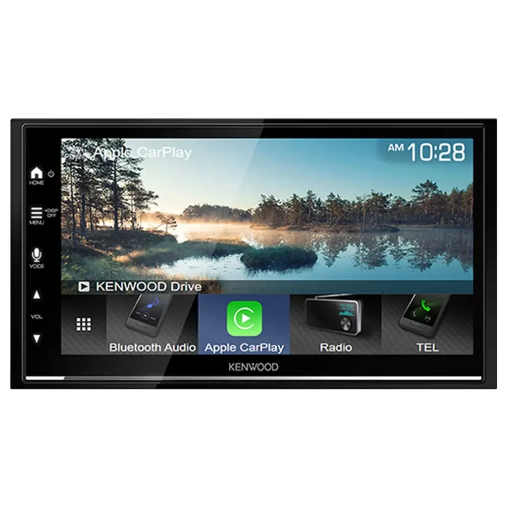This bundle includes a Kenwood CMOS-230LP Rearview Camera with License Plate Mounting Hardware and Universal Mounting Hardware, and a Kenwood DMX8709S Digital Multimedia Receiver with Bluetooth. The Kenwood CMOS-230LP Rearview Camera offers a wide-angle mirror image, 128° perfect view angle, and crystal clear images. It features a waterproof chassis, flexible mount base, and NTSC Video Signal Out. The camera unit includes a 1/3.6" colour CMOS sensor, high sensitivity pixels, and wide-angle lens with a focal length of f: 1.12mm. It operates on 14.5V voltage, with maximum current consumption of 0.05A, and measures 23.4 x 23.4 x 23.9mm in dimensions. The license plate mounting kit is included. The Kenwood DMX8709S Digital Multimedia Receiver boasts a 6.8" WVGA Monitor with Capacitive Touch Panel, Android Auto™ & Android Auto™ Wireless, Wired and Wireless Apple CarPlay™, USB Mirroring for Android, 13 Band EQ & Digital Time Alignment, 3 Camera Inputs, Short Chassis, and 3 Preouts 4.0V. Stay safe and connected with Apple Carplay and Android Auto, offering seamless integration with your smartphone for navigation, calls, messaging, and music control. The receiver also supports true mirroring via USB and 2-way touch control for Android devices. Enhance your driving experience with this advanced bundle from Kenwood, combining safety, convenience, and superior audiovisual performance for your vehicle. Enjoy easy parking with the rearview camera, and stay connected on the road with the digital multimedia receiver's smart features. Upgrade your car with Kenwood's reliable technology for a more enjoyable and secure driving journey.