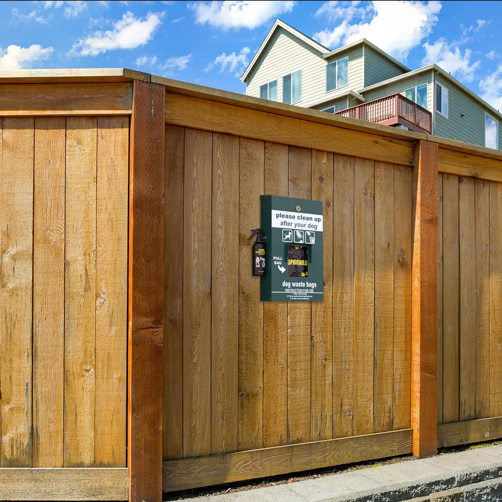 While daily walks are a great source of fun exercise for both man and man's best friend, they also help mother nature along which can lead to unplanned stops along favorite walking routes. Give pet owners everything they need to leave your neighborhood, dog park, or public walking trails as clean as they found them when you install this pet waste bag dispenser. From leakproof pet waste bags to a hand sanitizer bottle, this set makes pet waste pickup less of a chore. Made from rust-resistant galvanized steel, this waste bag holder is ideal for any outdoor areas where pet owners congregate. The glow in the dark signage is highly visible both day and night and in less than perfect weather. The locking bag dispenser holds lots of pull out header bags and boasts a rain guard to keep waste bags dry. Last but not least, the nifty hand sanitizer bottle is readily available after the pickup work is done so pet owners are free to continue on their way with no lingering germs or odors. Install this bag dispenser on walls, fences, or steel posts where needed. For your convenience, we have included 400 waste bags to get you started.