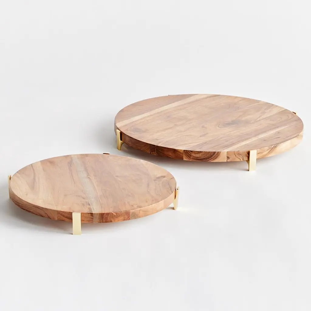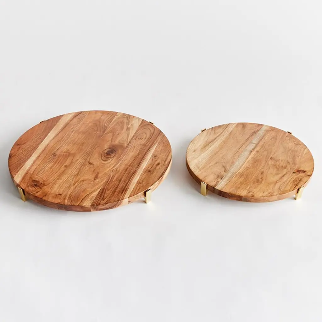 Kieran Rustic Lodge Natural Acacia Wood Round Serving Board - Set Of 2