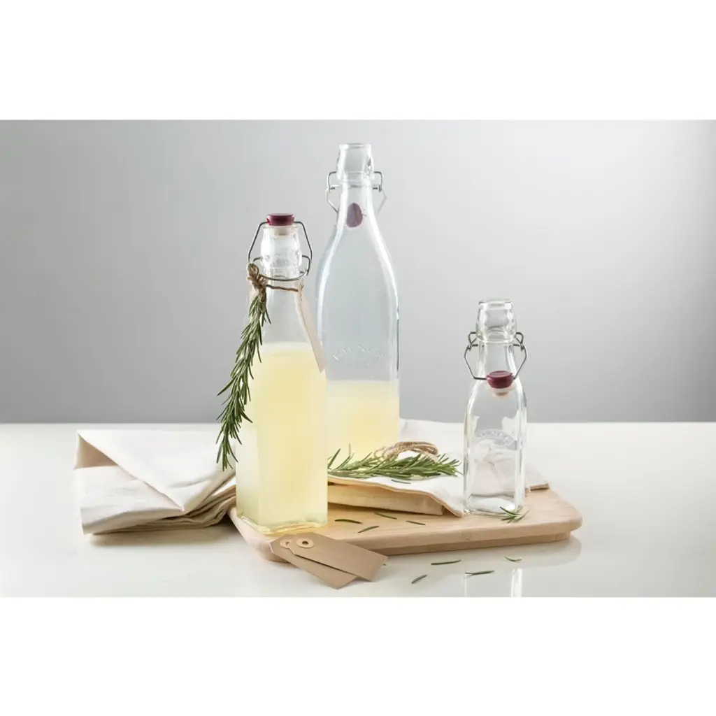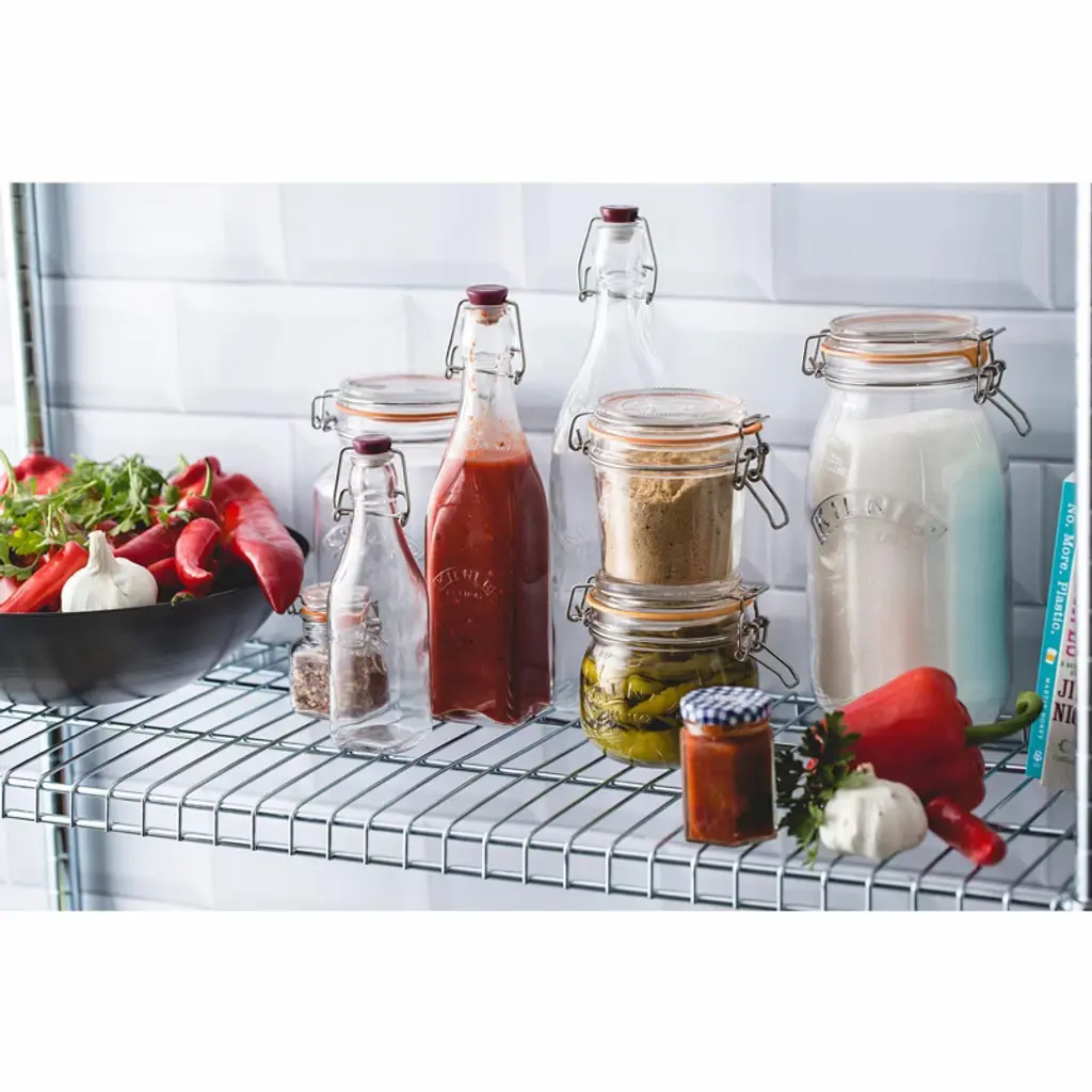 The Kilner Scratch Cooking Square Clip Top Bottle (16 oz) is a reusable glass container ideal for homemade dressings, syrups, or small-batch sauces. Its airtight clip-top lid and square shape make it both stylish and space-saving.