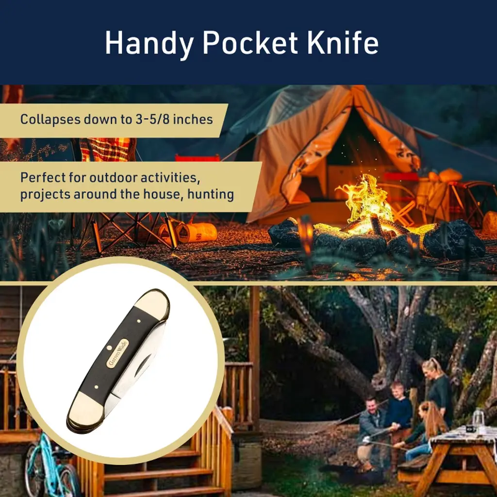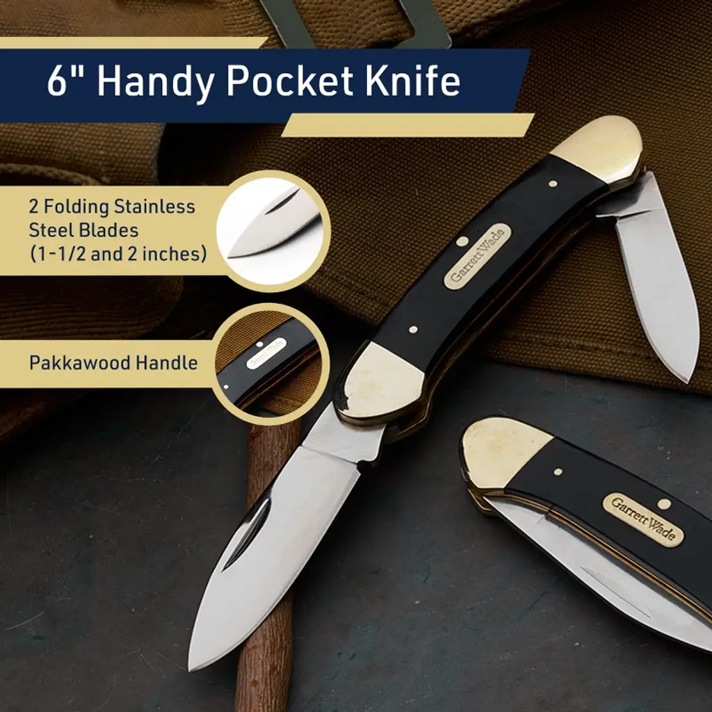 The Basic Two Blade Folding Knife by Kings County Tools is a classic American-style everyday carry knife. There are 2 different folding blades: one measuring 1.5-inches-long, and the other 2-inches-long. You’ll find myriad uses for this handy pocketknife, whether for whittling sticks, woodcarving, opening packages at the office, or slicing small food items like vegetables and cheese. The handle of the pen knife is made from Pakkawood, a stabilized wood that won’t shrink or crack, for lasting enjoyment. This small folding pocket knife is easy to keep on hand — just toss one in the kitchen drawer or in your bag and you’ll be ready for whatever life throws your way.