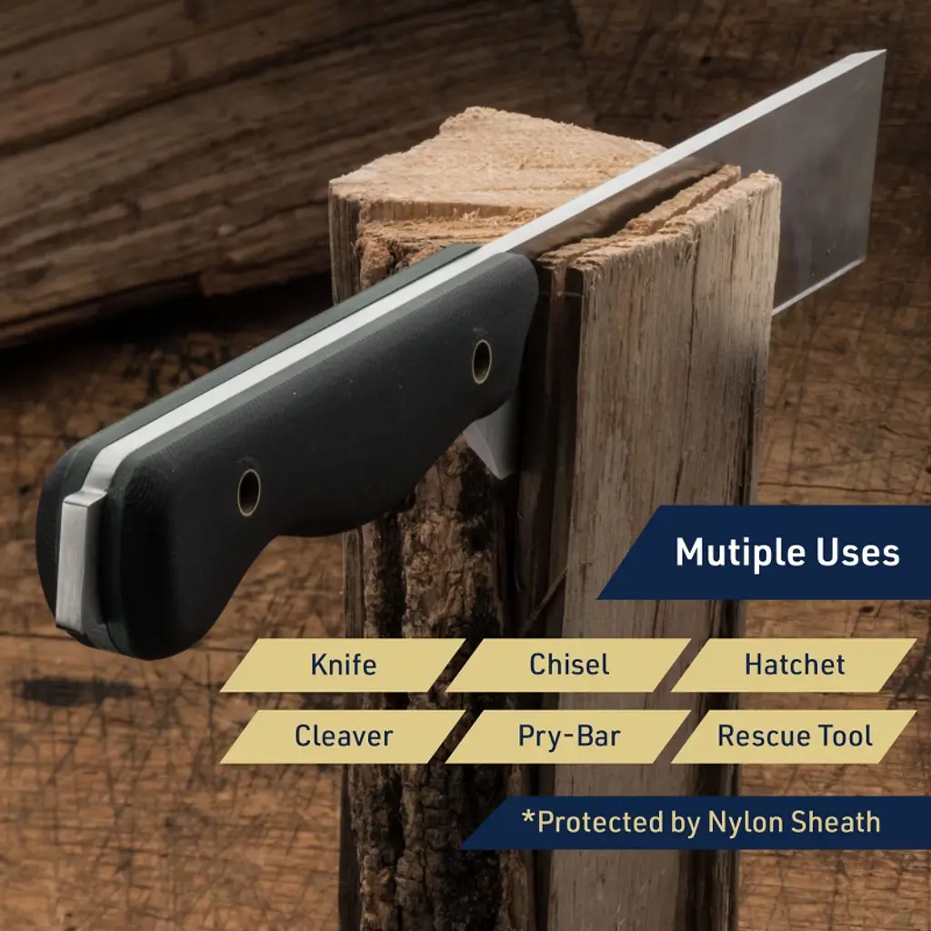 The XHD Chisel Knife by Kings County Tools is a game changer for everything from tough demo jobs to preparing kindling on camping trips. This ultimate hybrid incorporates features of a knife, chisel, hatchet, cleaver, pry-bar, and rescue tool. The high-carbon steel blade is 6-inches-long by 1.25-inches-wide and extends through the handle for extra durability. This construction or bushcraft knife features a sturdy G10 handle with an extended butt for striking and a wide exposed spine. The wood chisel knife also comes with a nylon sheath for easy everyday carry. Kings County Tools is your source for wood chisels for woodworking with quality you can count on.