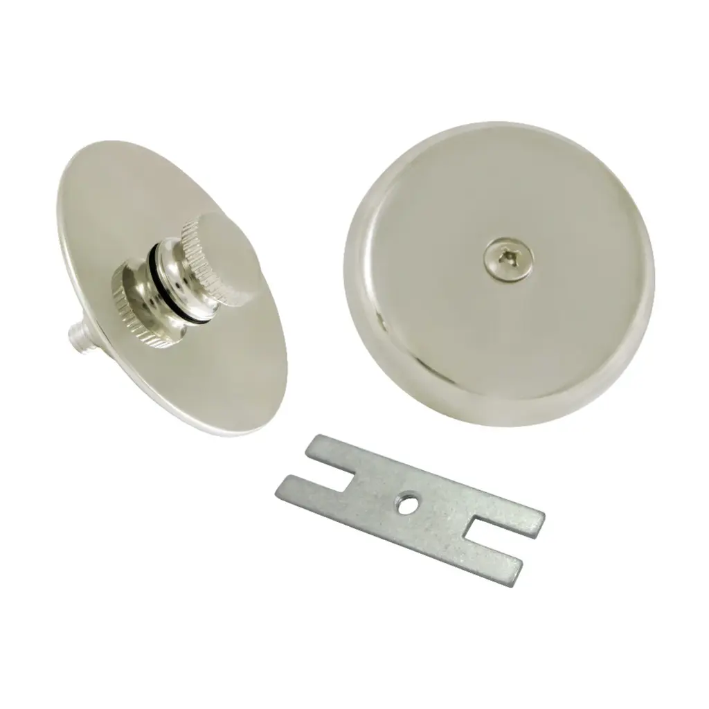 The Trimscape tub drain stopper with overflow plate replacement trim kit allows you to easily replace an old or unsightly drain opening without removing the existing bathtub piping. It will fit most standard drain sizes and installation can be completed in minutes with the included hardware.FeaturesFabricated from High Quality Zinc AlloyFits Both 5/16" and 3/8" Threaded Waste ShoesIncludes Push-Pull Stopper, Overflow Plate, Reversible Threaded Adapter and Bath ShoeCovers Up Worn Out DrainsCorrosion-Resistant FinishDesigned for Long-Lasting DurabilityEasy to InstallIncludes Complete Instructions